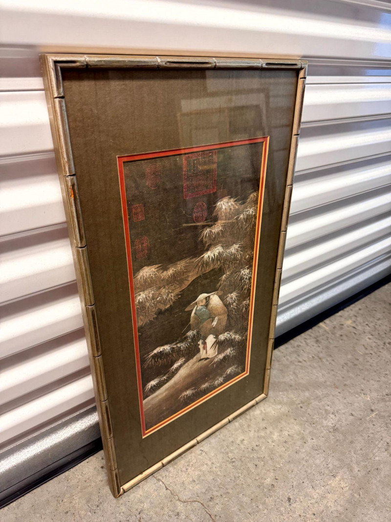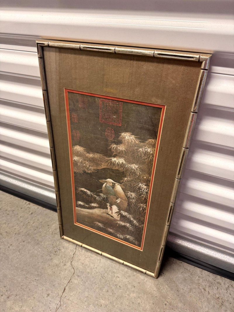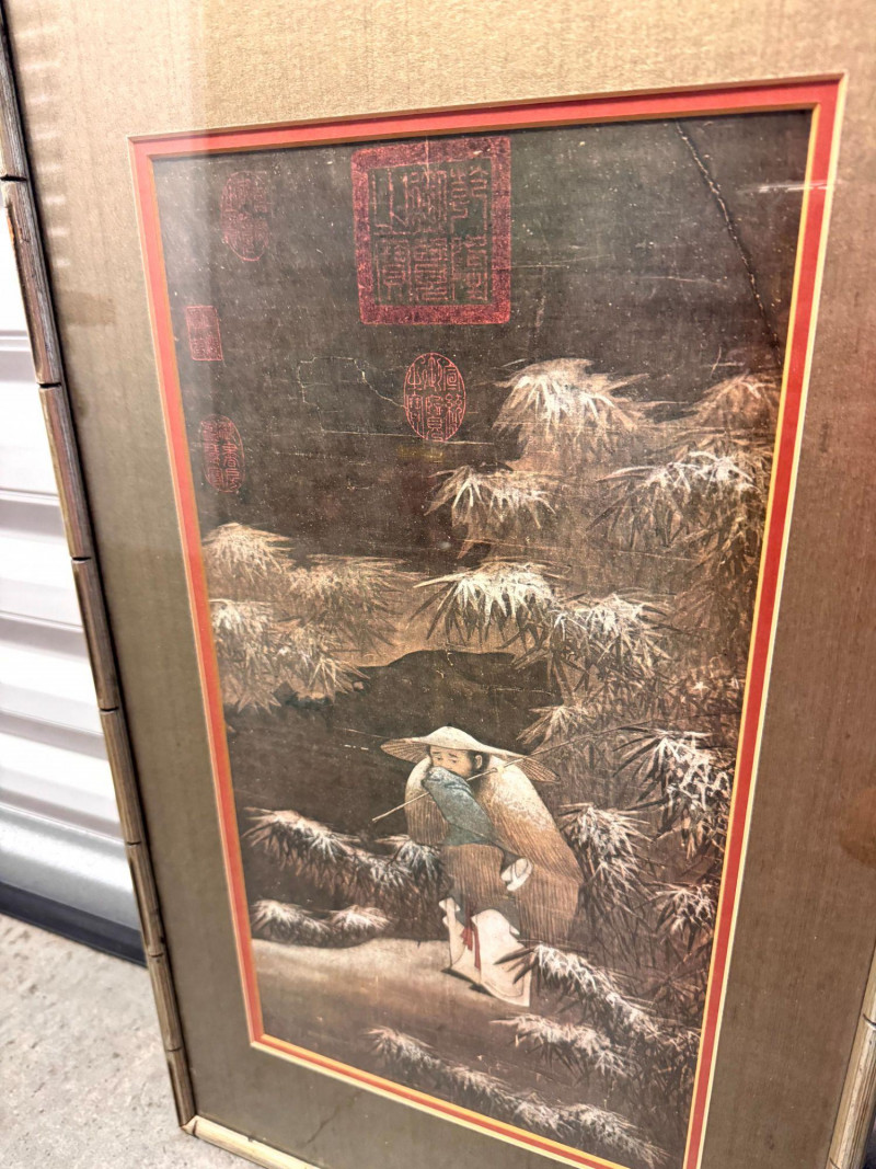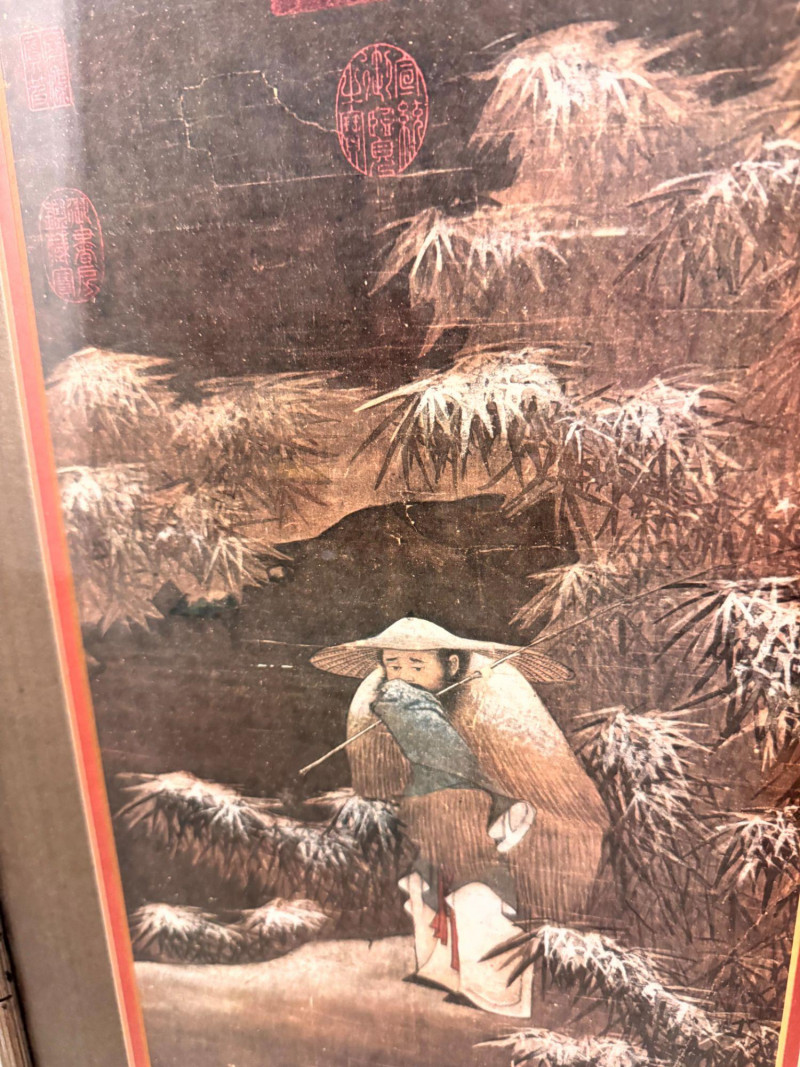 Lot # 62 - Fishing in the Snow Asian Framed Art Print w/ Gold Tone Matting