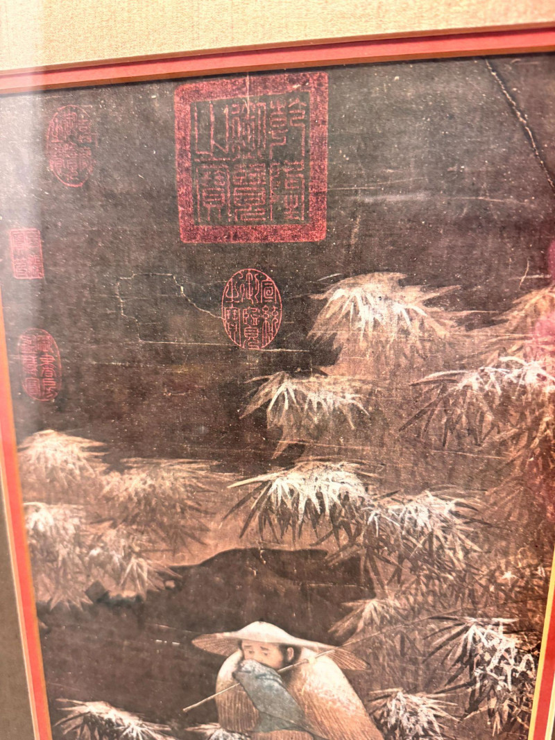 Fishing in the Snow Asian Framed Art Print w/ Gold Tone Matting.