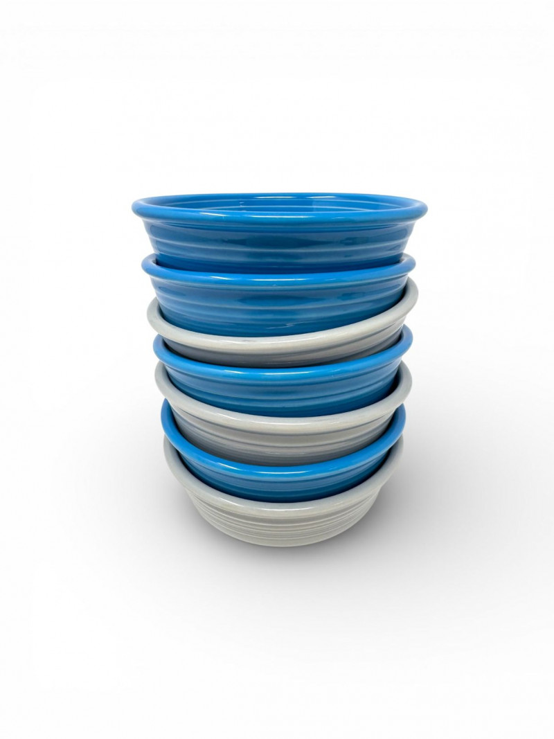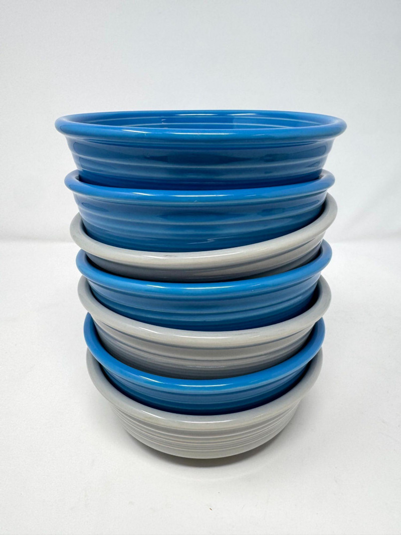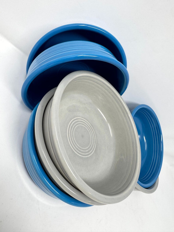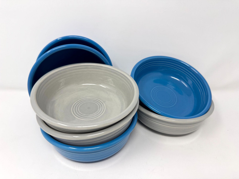 Collectible Fiestaware Cereal/Salsa Bowls, 7pc Blue Gray Mixed Colors.