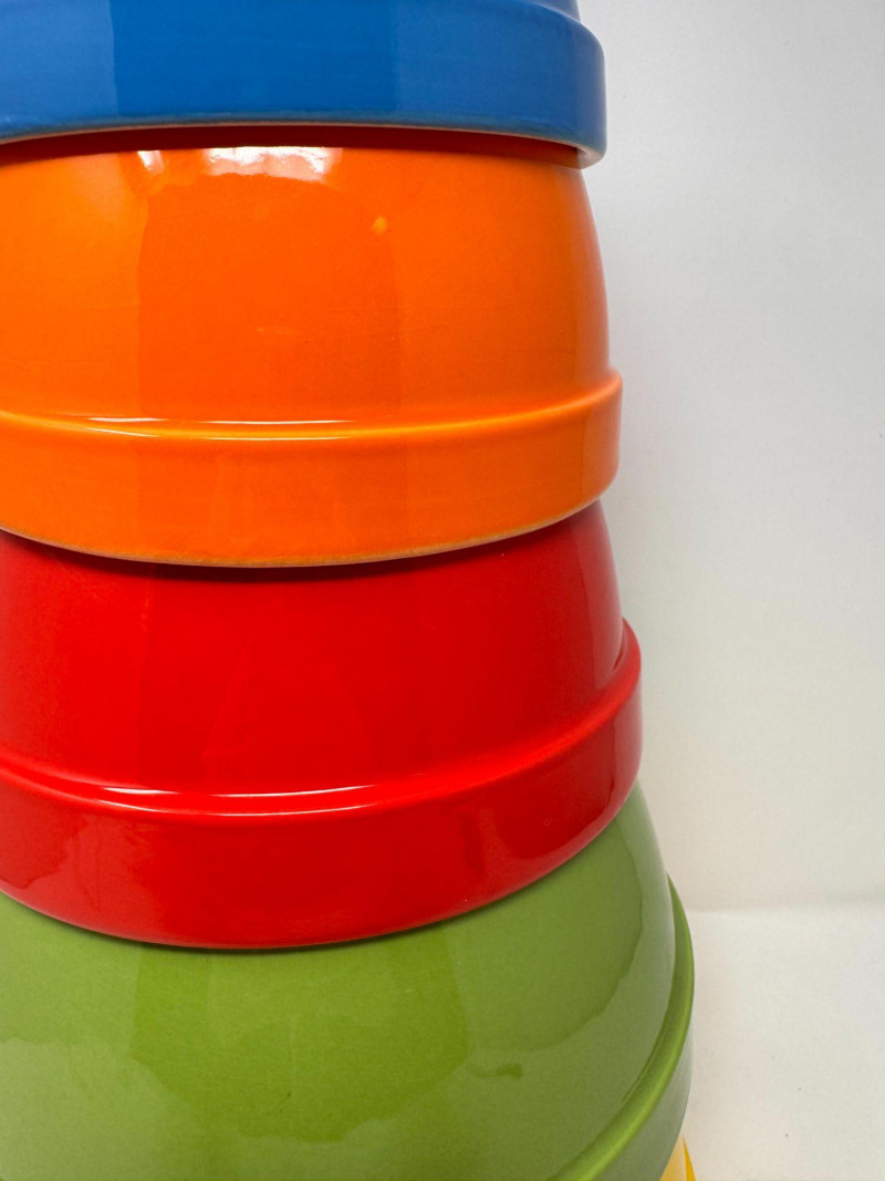 Crate & Barrel Nesting Mixing Bowls, 5pc Colorful Kitchen Set.