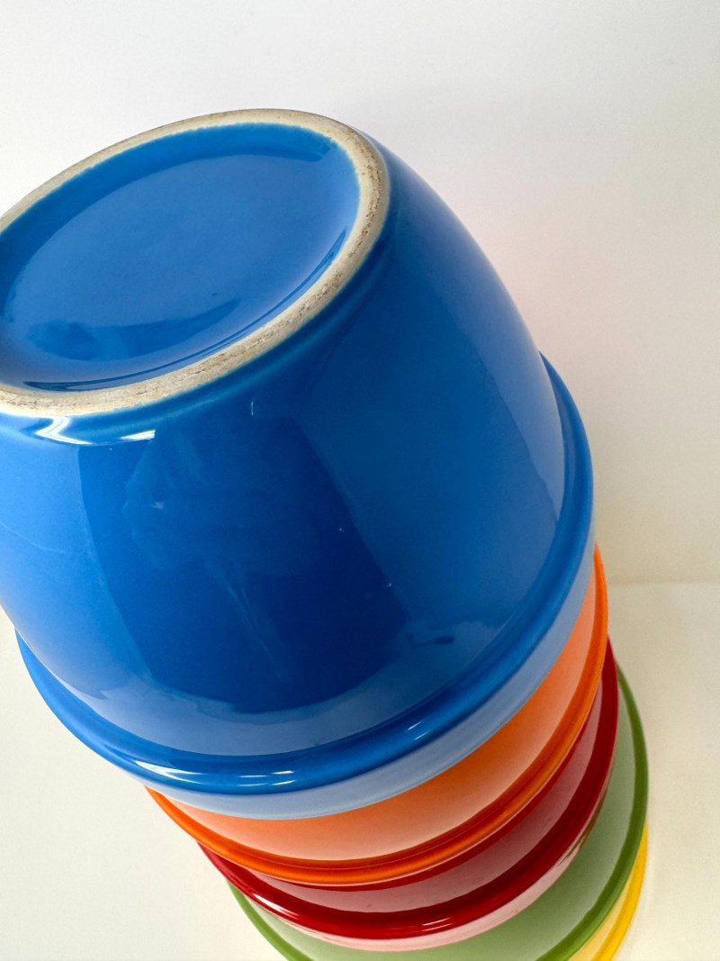 Lot # 66 - Crate & Barrel Nesting Mixing Bowls, 5pc Colorful Kitchen Set