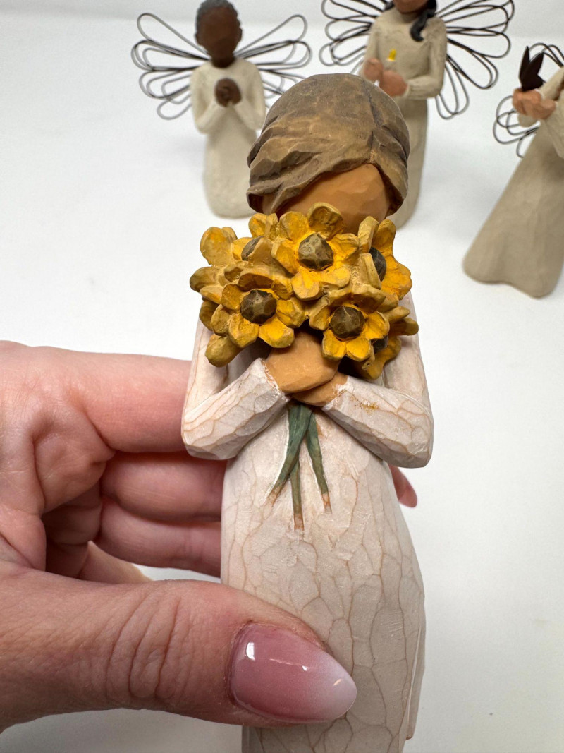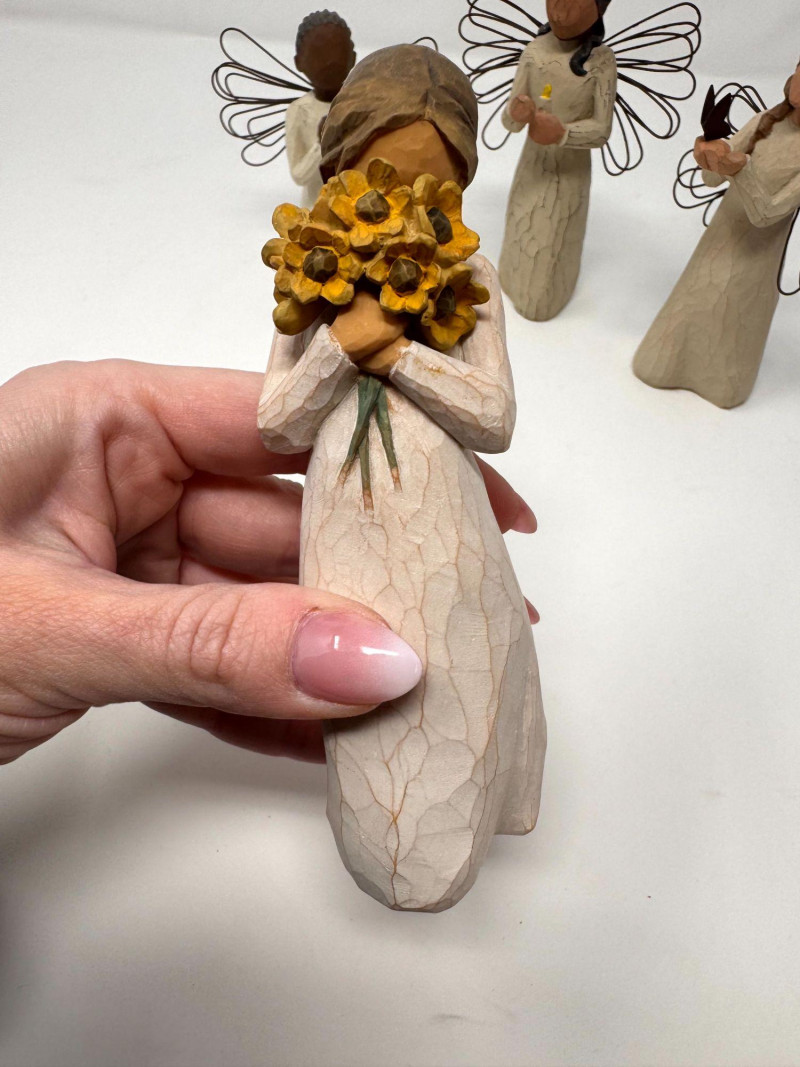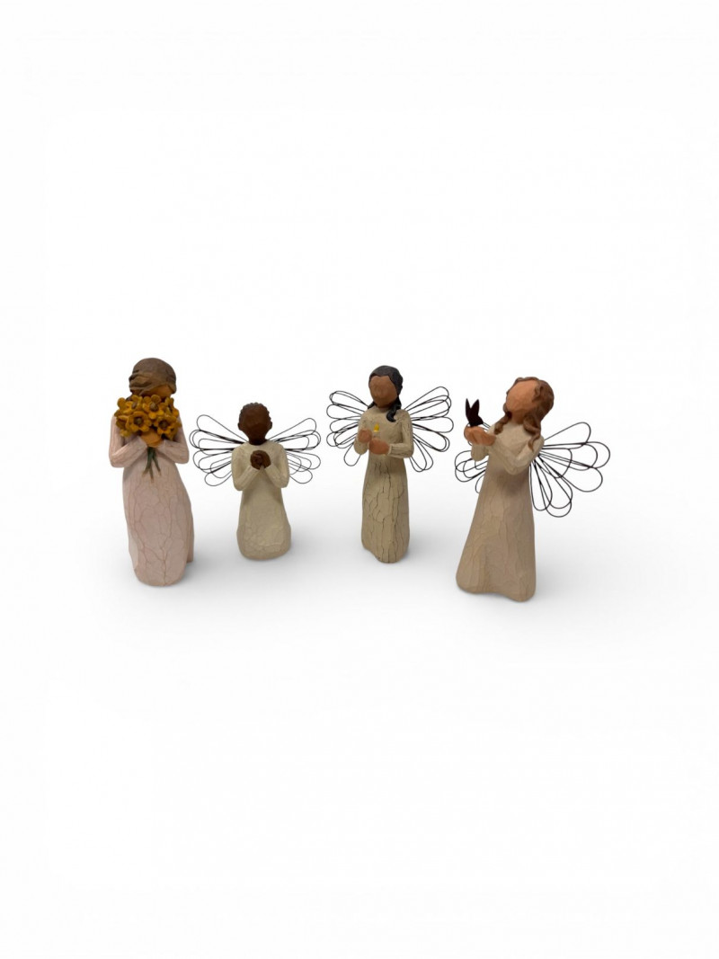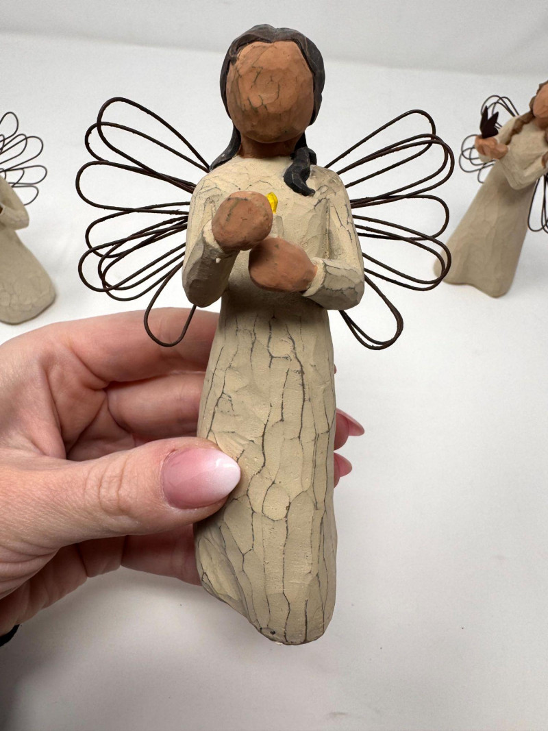 Willow Tree Angel Figurines – Angel of Freedom, Spirit & More (4). Includes examples titled: Each measures approx. 4.5–5.5 in tall.