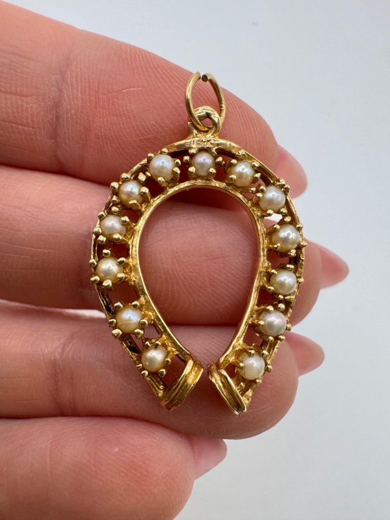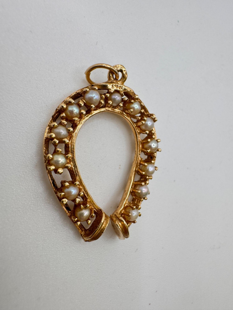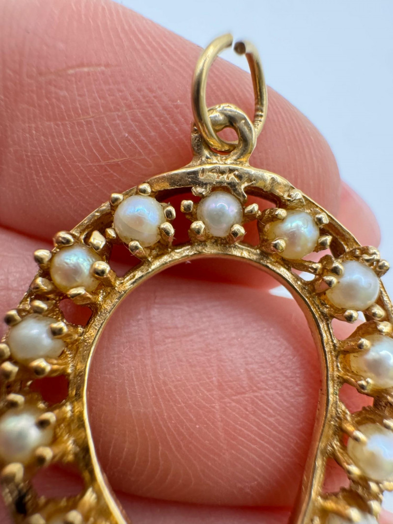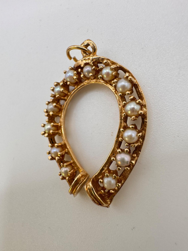 14K Gold Pearl Horseshoe Pendant 3.65g
