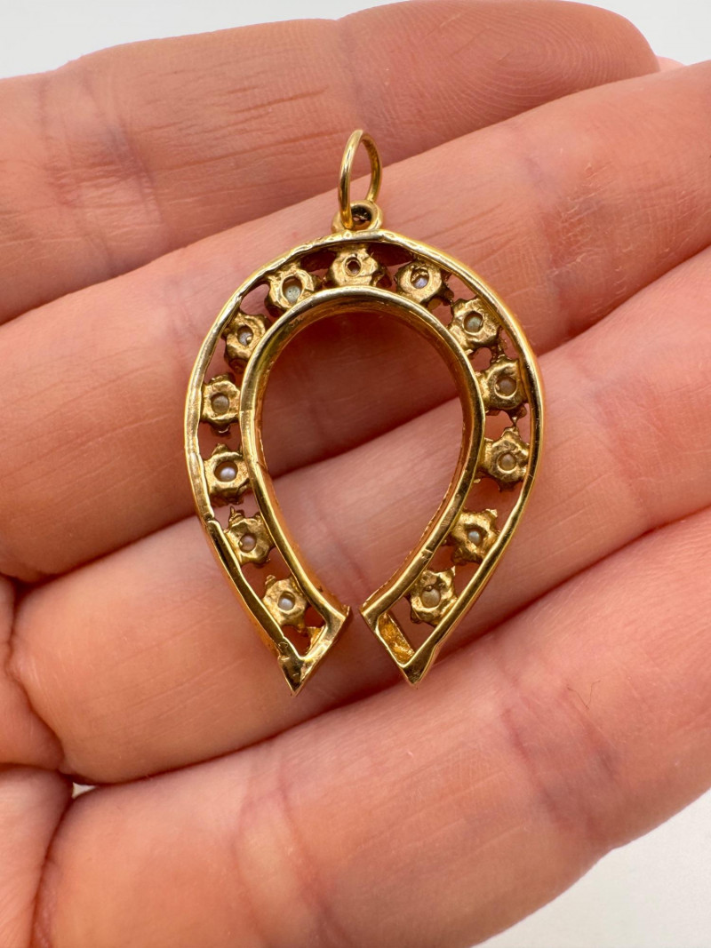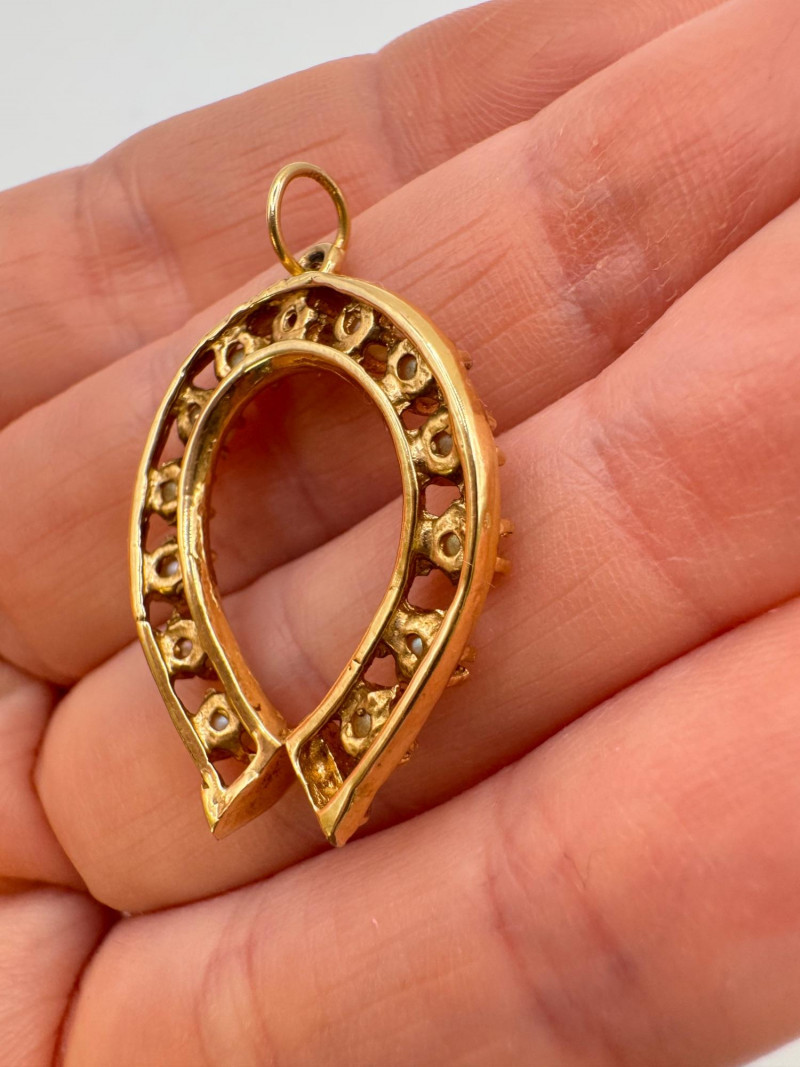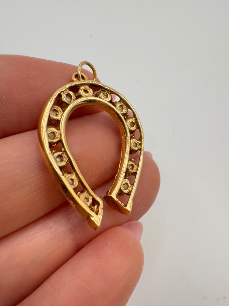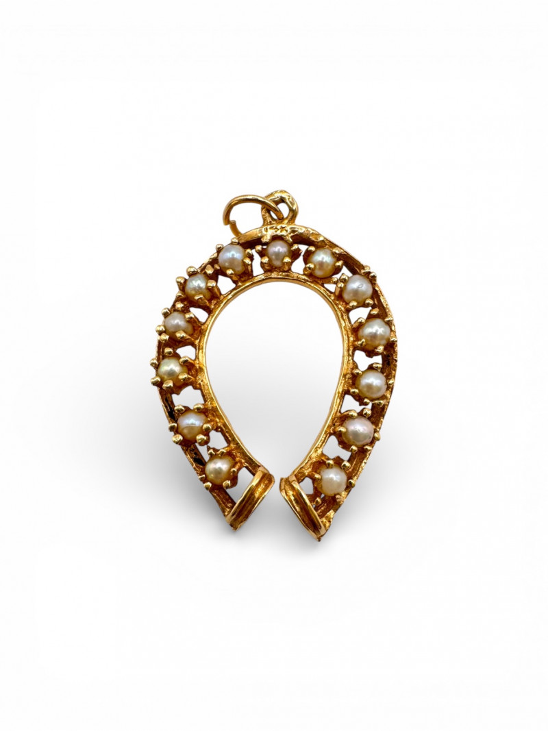 14K Gold Pearl Horseshoe Pendant 3.65g