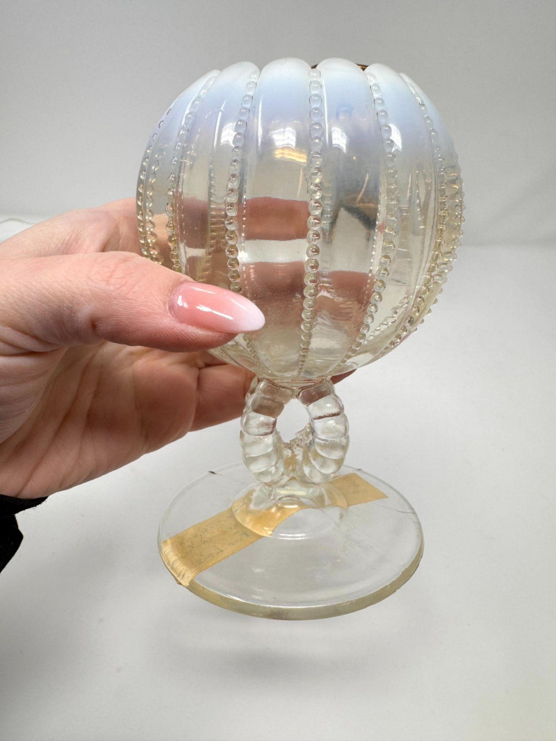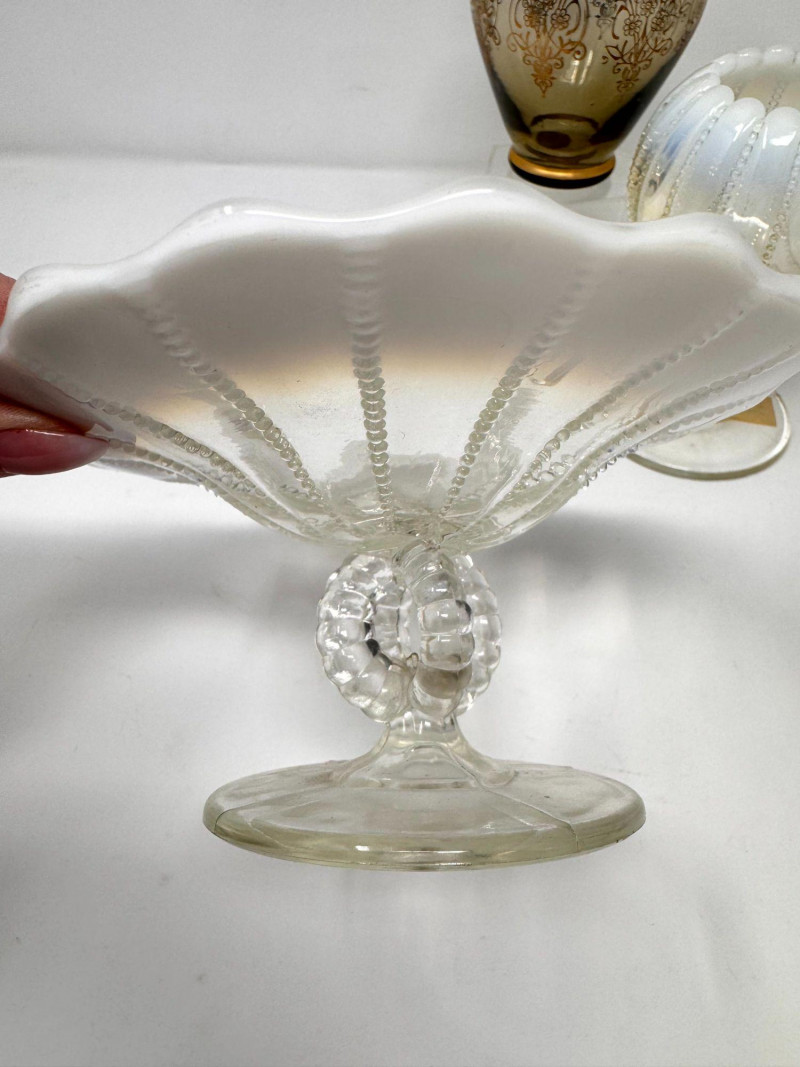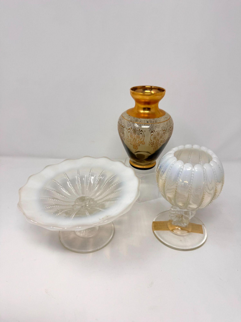 Murano Gold Overlay Vase, Opalescent Compote & Beaded Glass Vase.