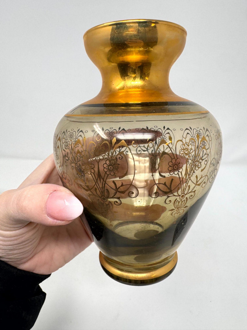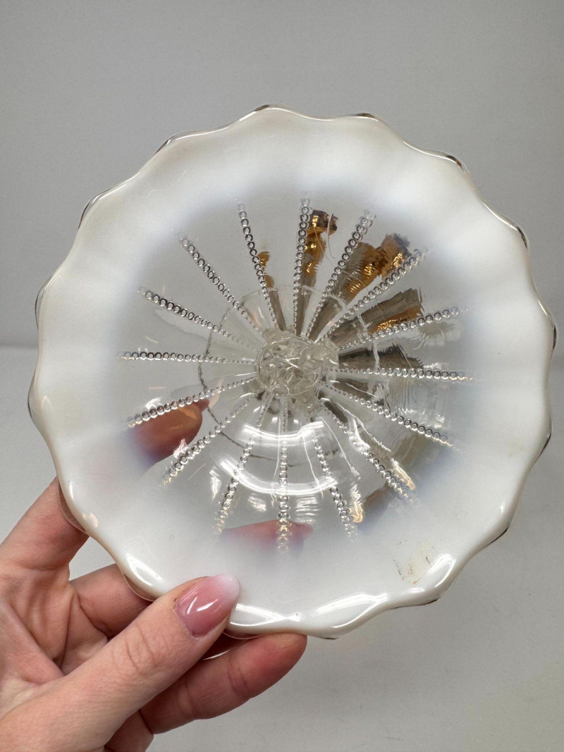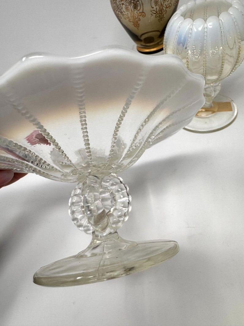 Lot # 86 - Murano Gold Overlay Vase, Opalescent Compote & Beaded Glass Vase