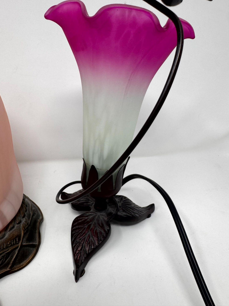 Lot # 92 - Pink Frosted Glass Cat Lamp Bronze Head Base & Lily Shade Lamp