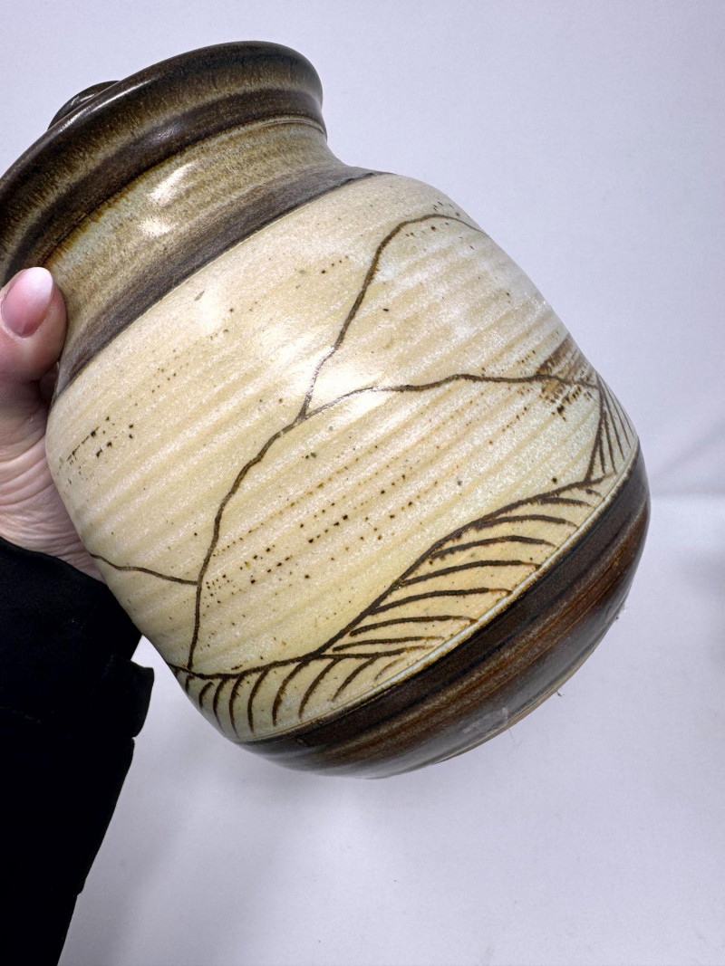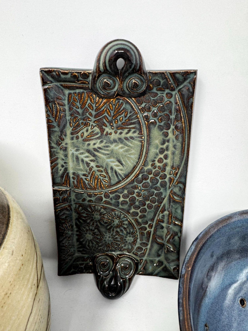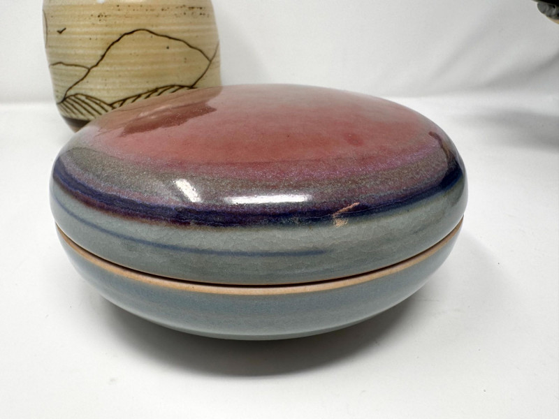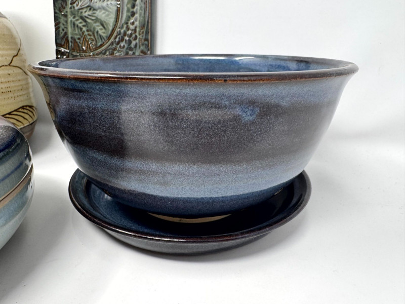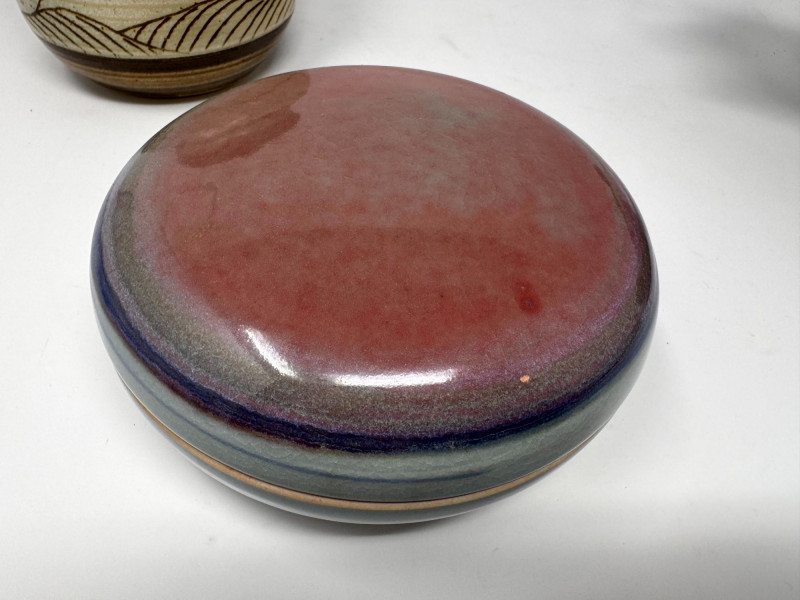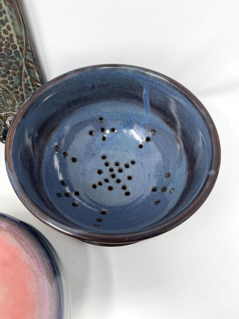 Lot # 106 - Studio Pottery – Barbara Childs Jar, Lidded Dish, Colander Bowl & Tile