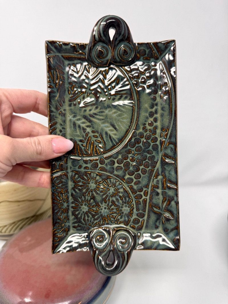 Studio Pottery – Barbara Childs Jar, Lidded Dish, Colander Bowl & Tile.