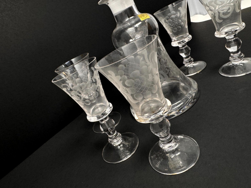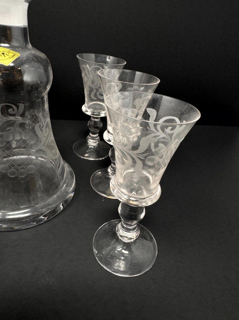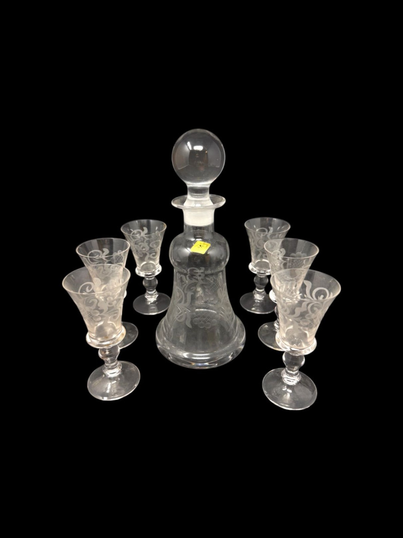Lot # 109 - Salzburger Cristallglas Decanter & 6 Etched Crystal Cordial Glasses