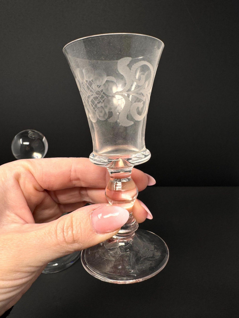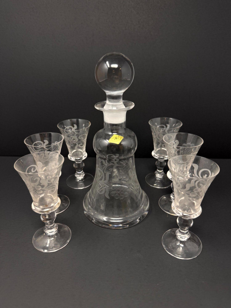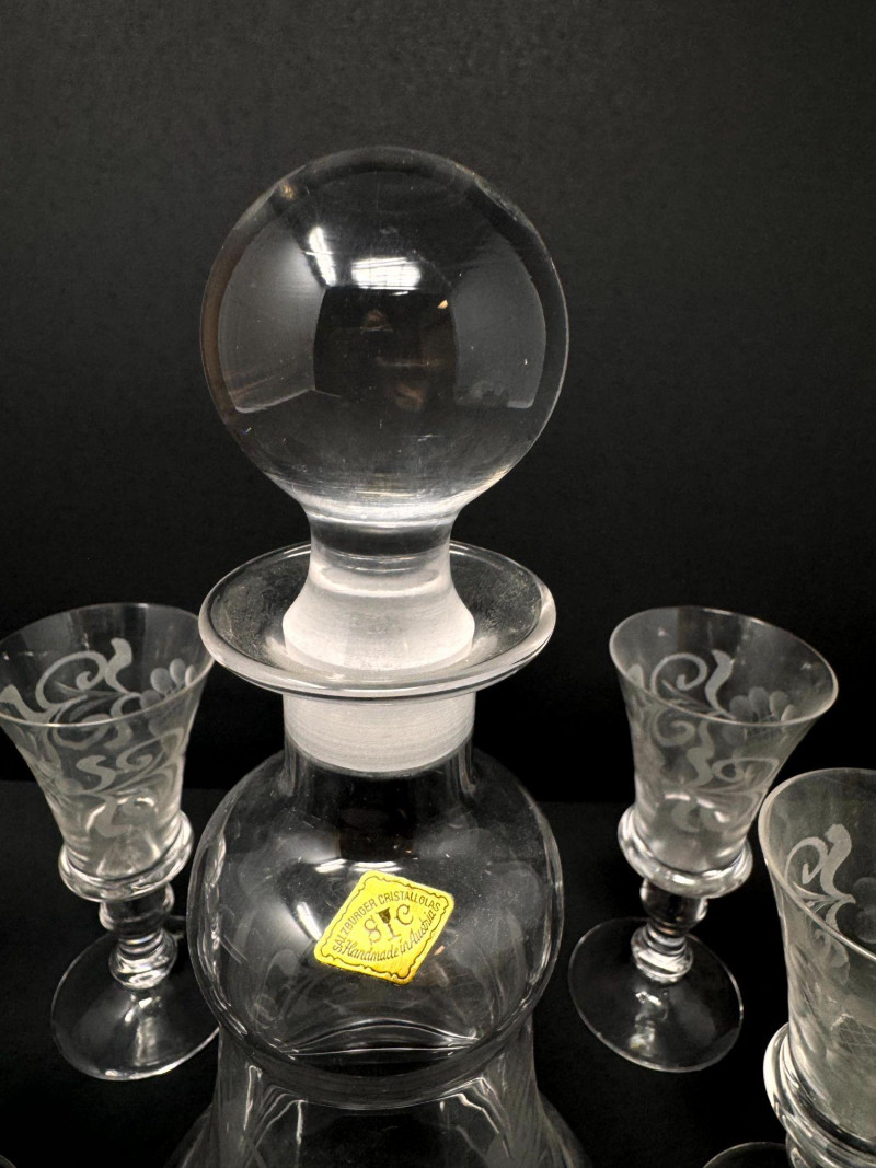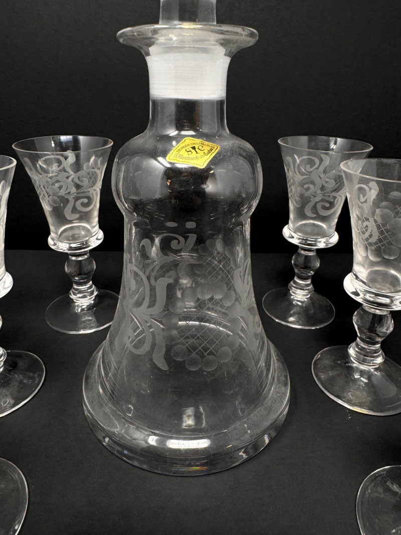 Salzburger Cristallglas Decanter & 6 Etched Crystal Cordial Glasses.
