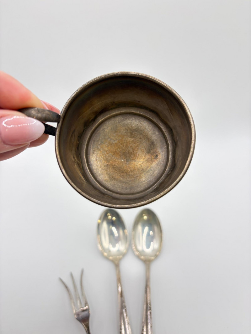 Sterling Silver Flatware & Cup – Towle / “Madeira” Marks, 5pc, 147.24g. Disclaimer: This item has not been tested and is sold as is with no guarantees regarding metal quality, purity, gemstone authenticity, or composition. By placing a bid, you acknowledge and agree to these terms. No refunds will be issued based on these factors.