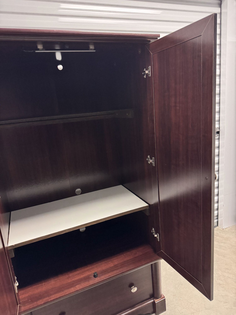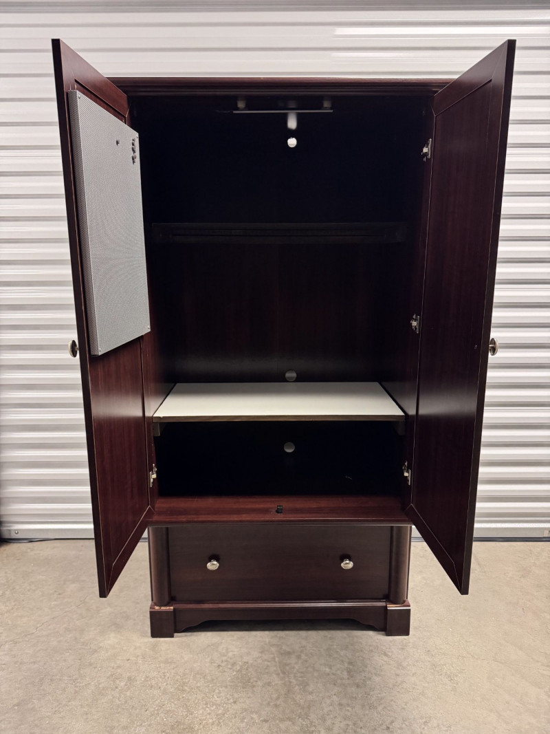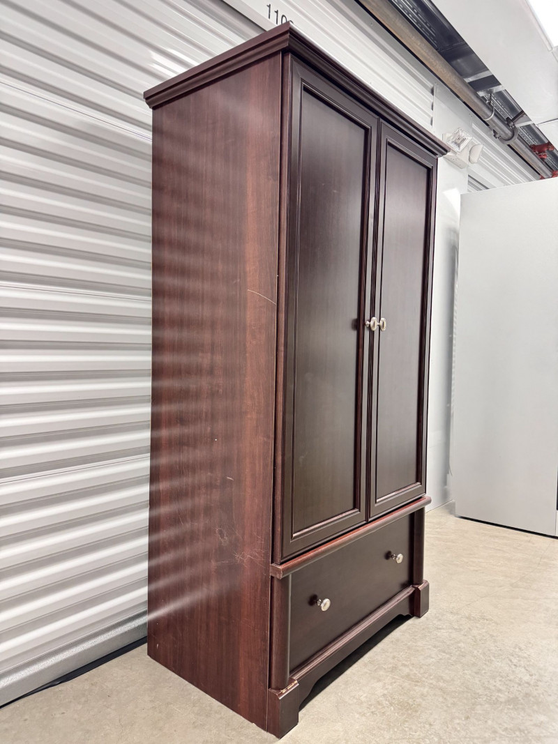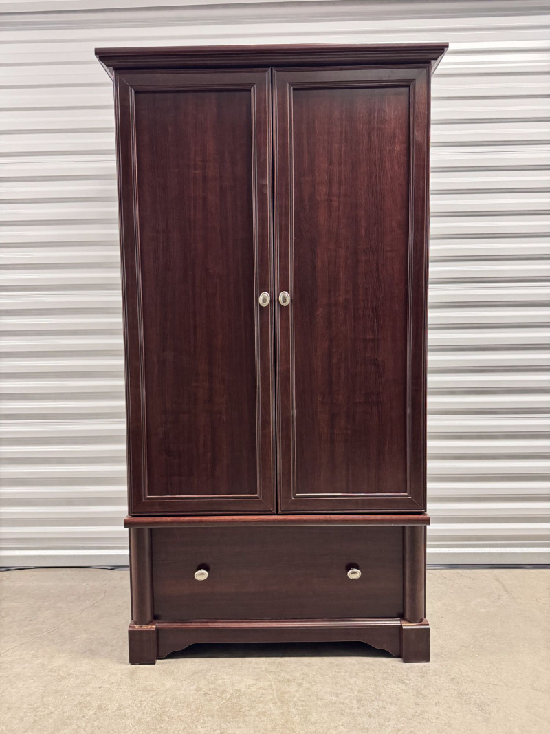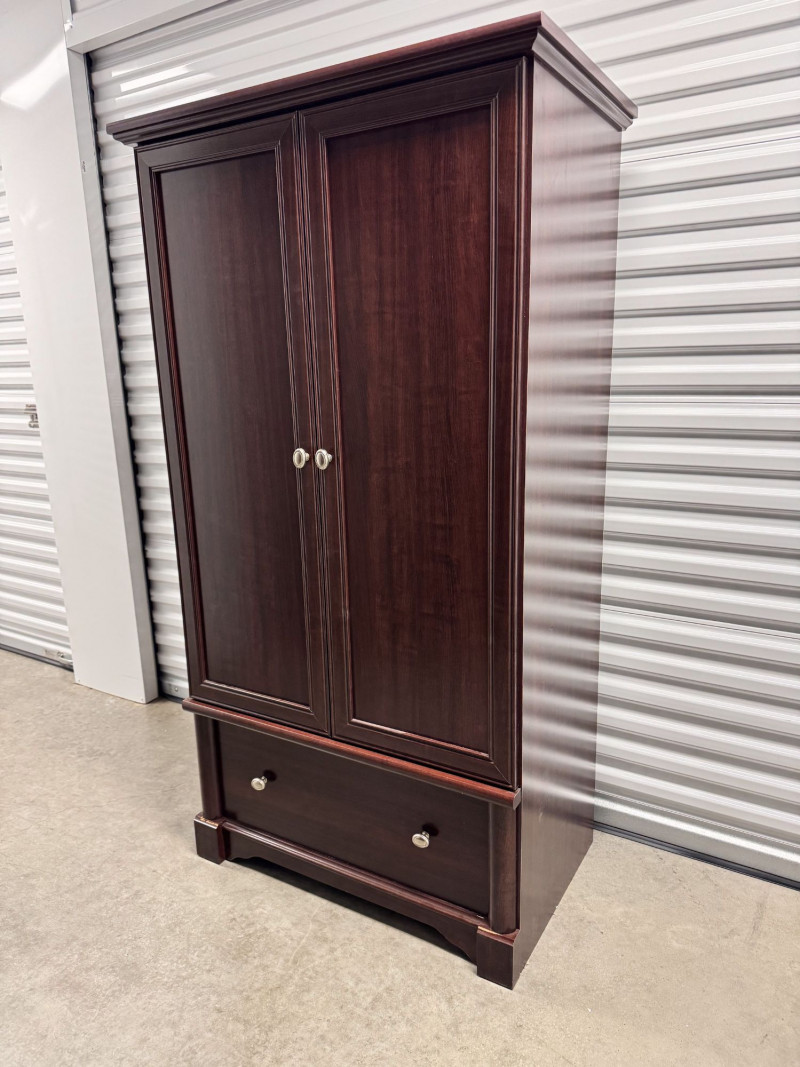 Cherry Finish Wood Armoire Wardrobe Cabinet w/ Drawer.