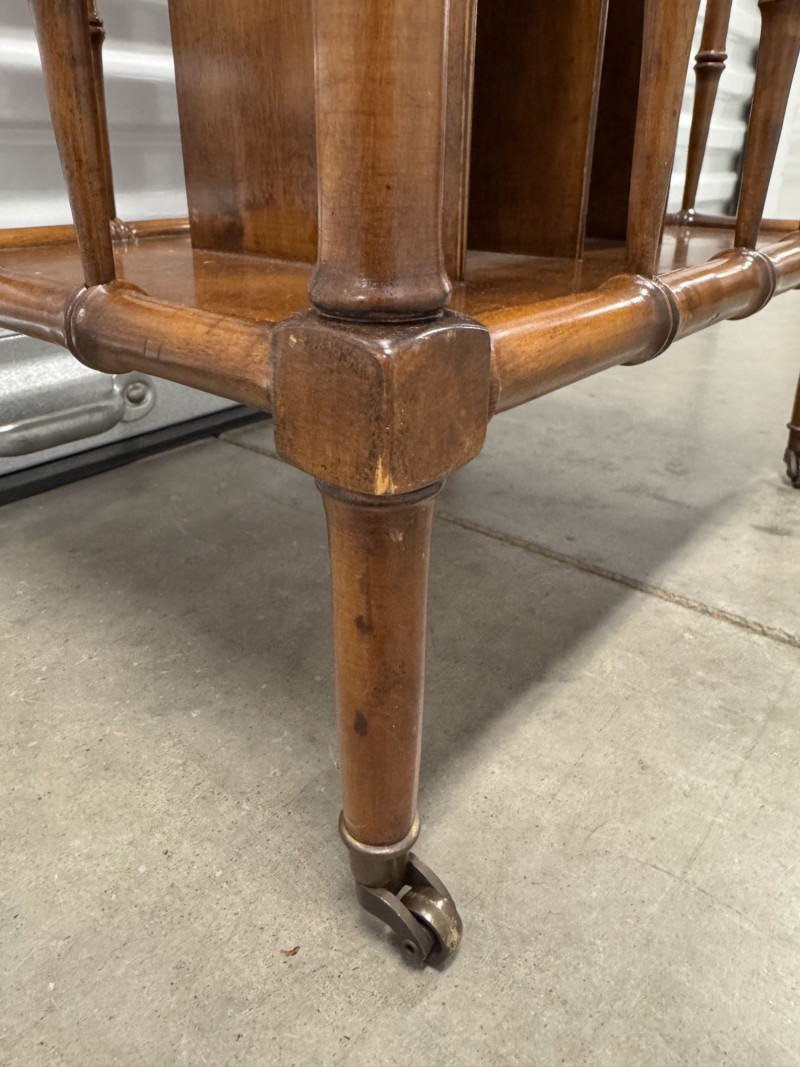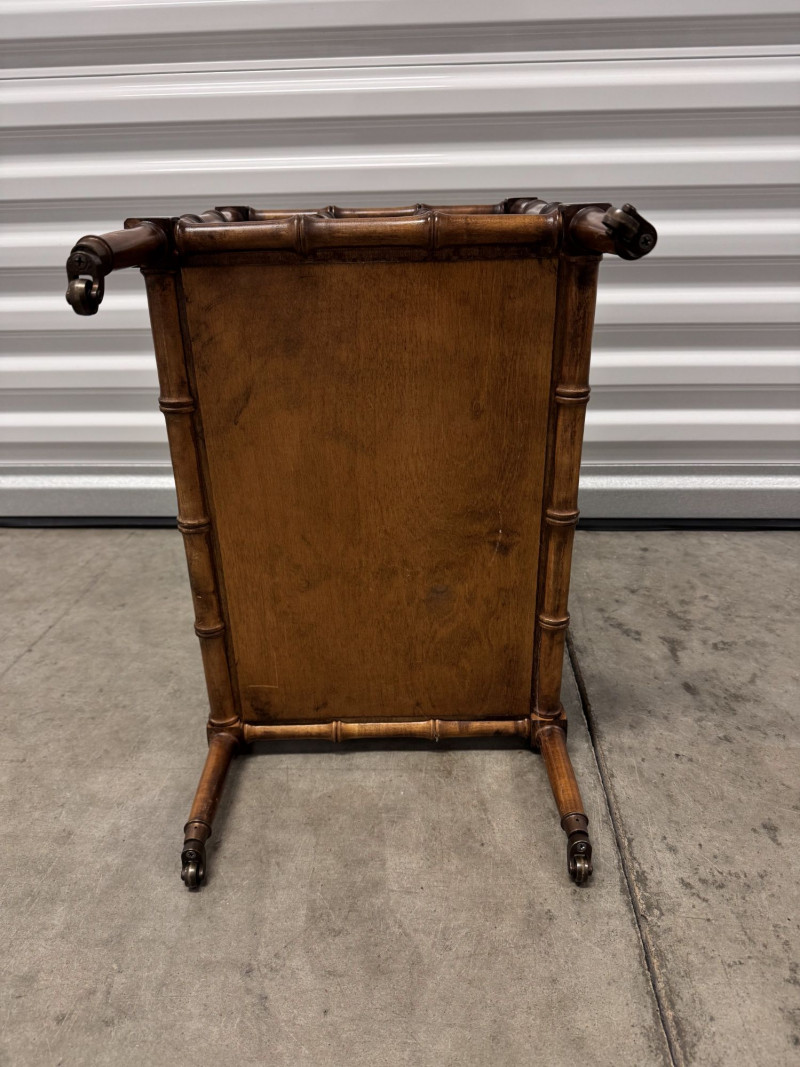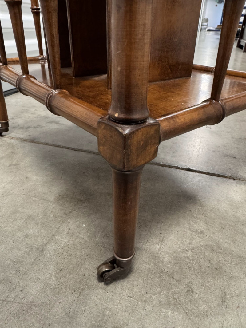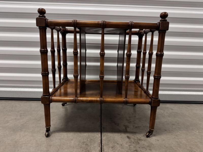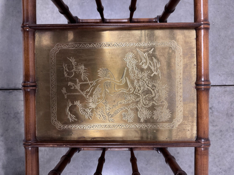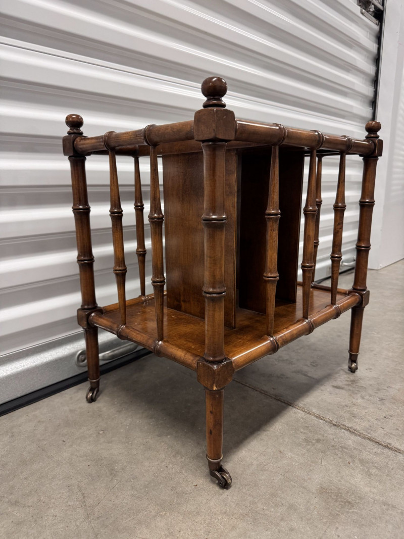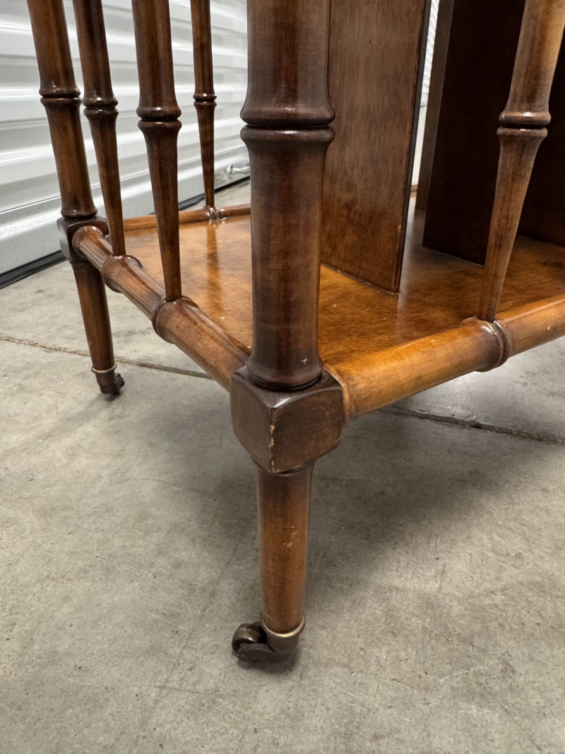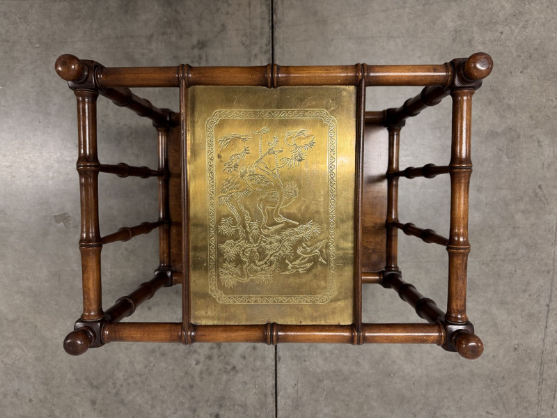 Lot # 16 - Vintage Faux Bamboo Wood Magazine Rack Table w/ Brass Panel