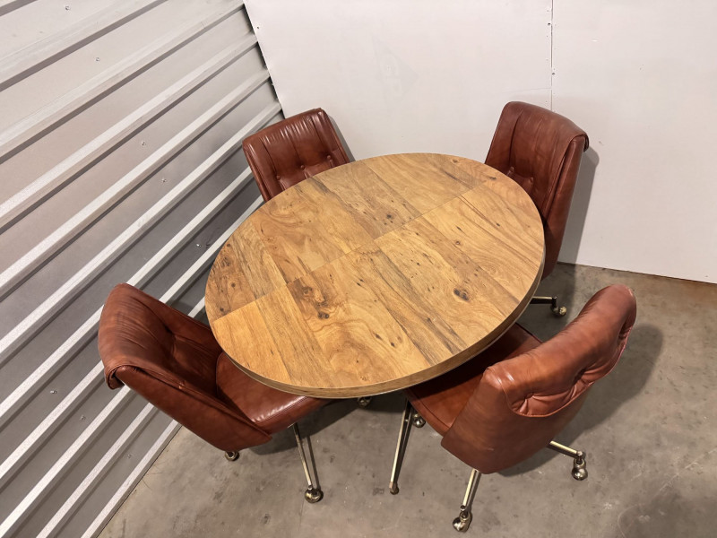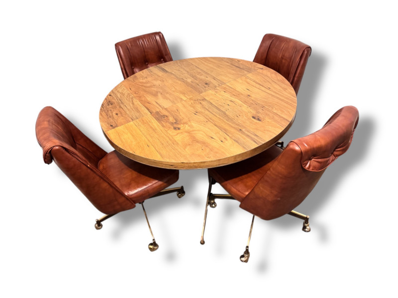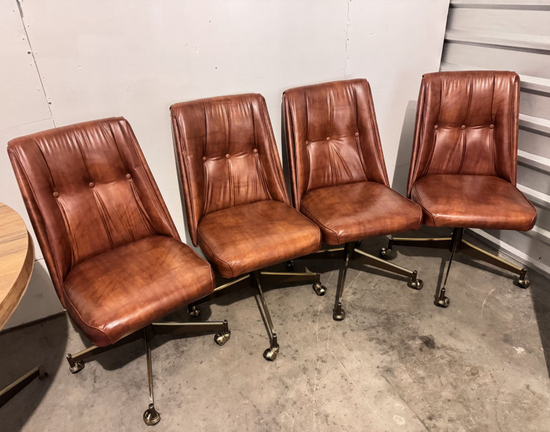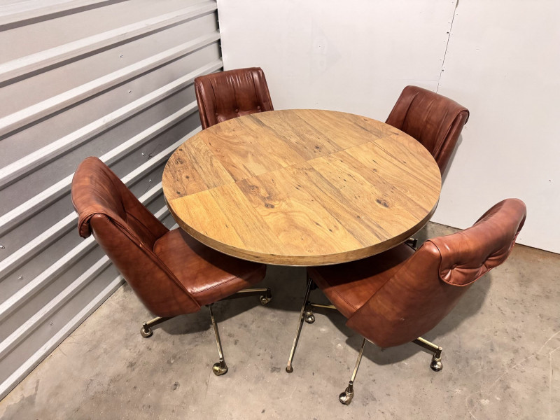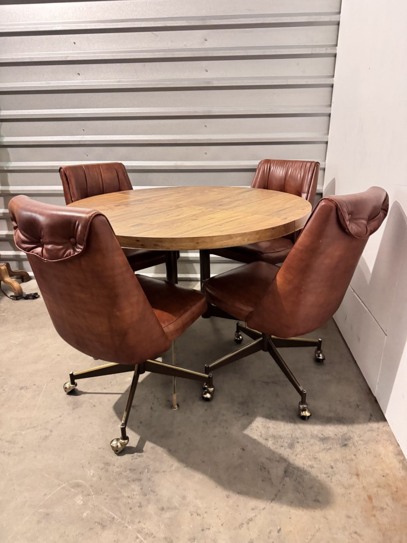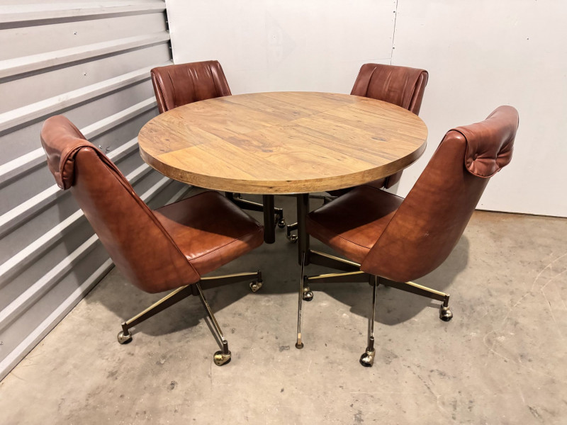 Retro Dining Table w/ Extension Leaf & 4 Howell Rolling Vinyl Chairs