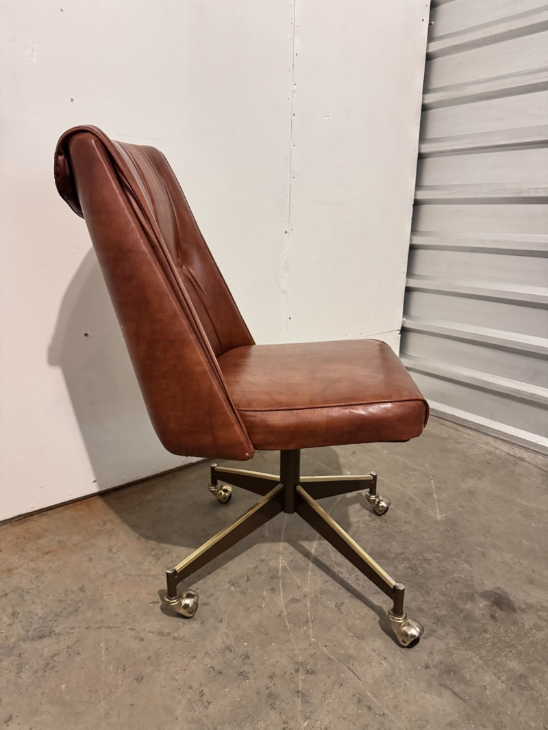 Lot # 28 - Retro Dining Table w/ Extension Leaf & 4 Howell Rolling Vinyl Chairs