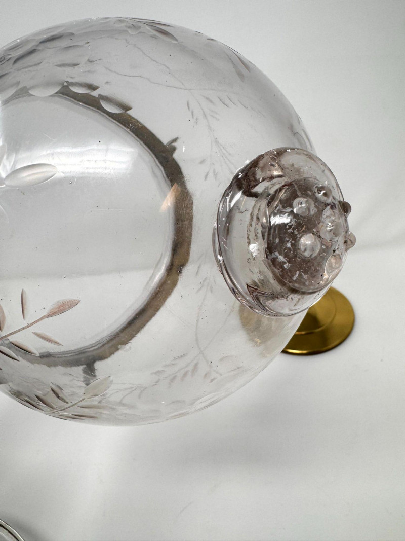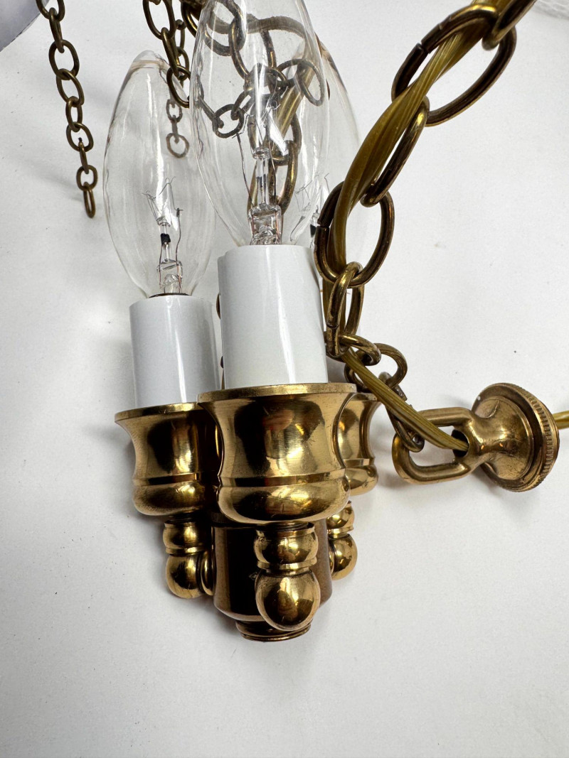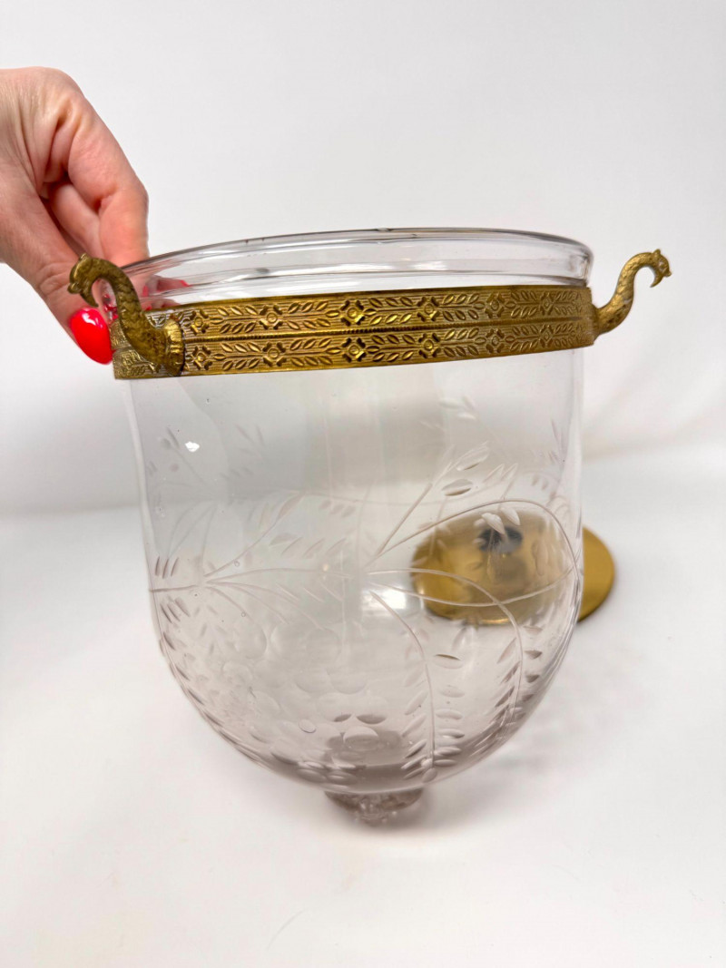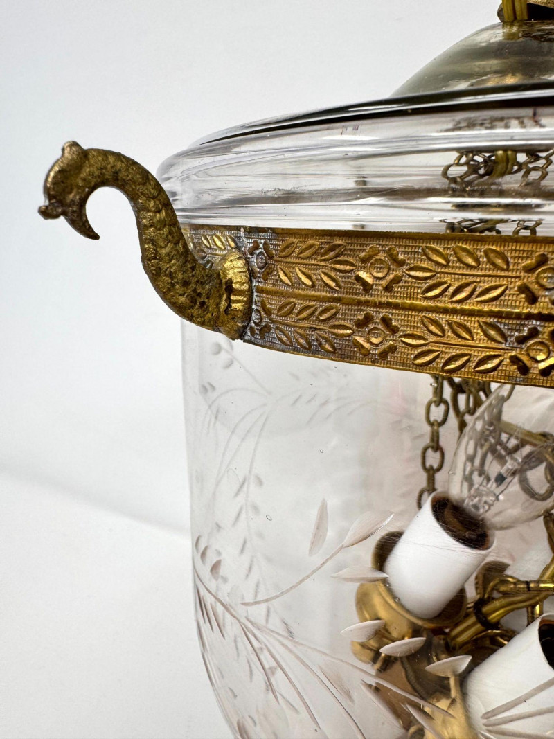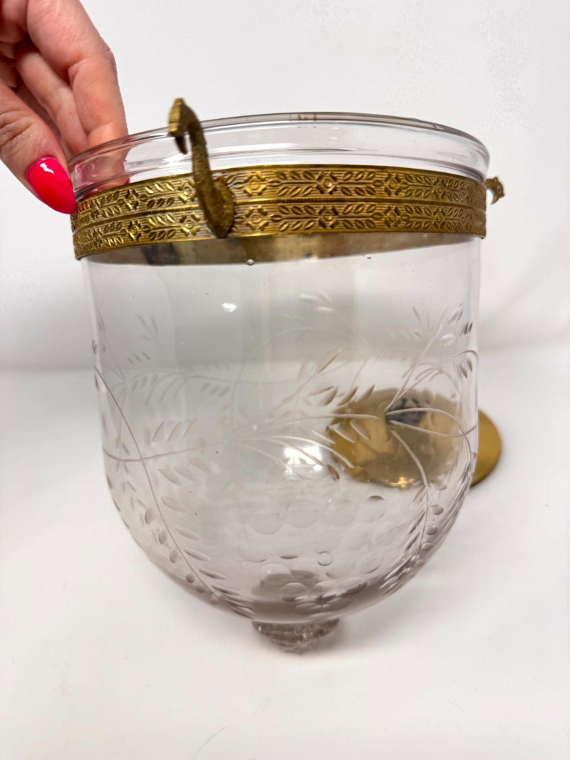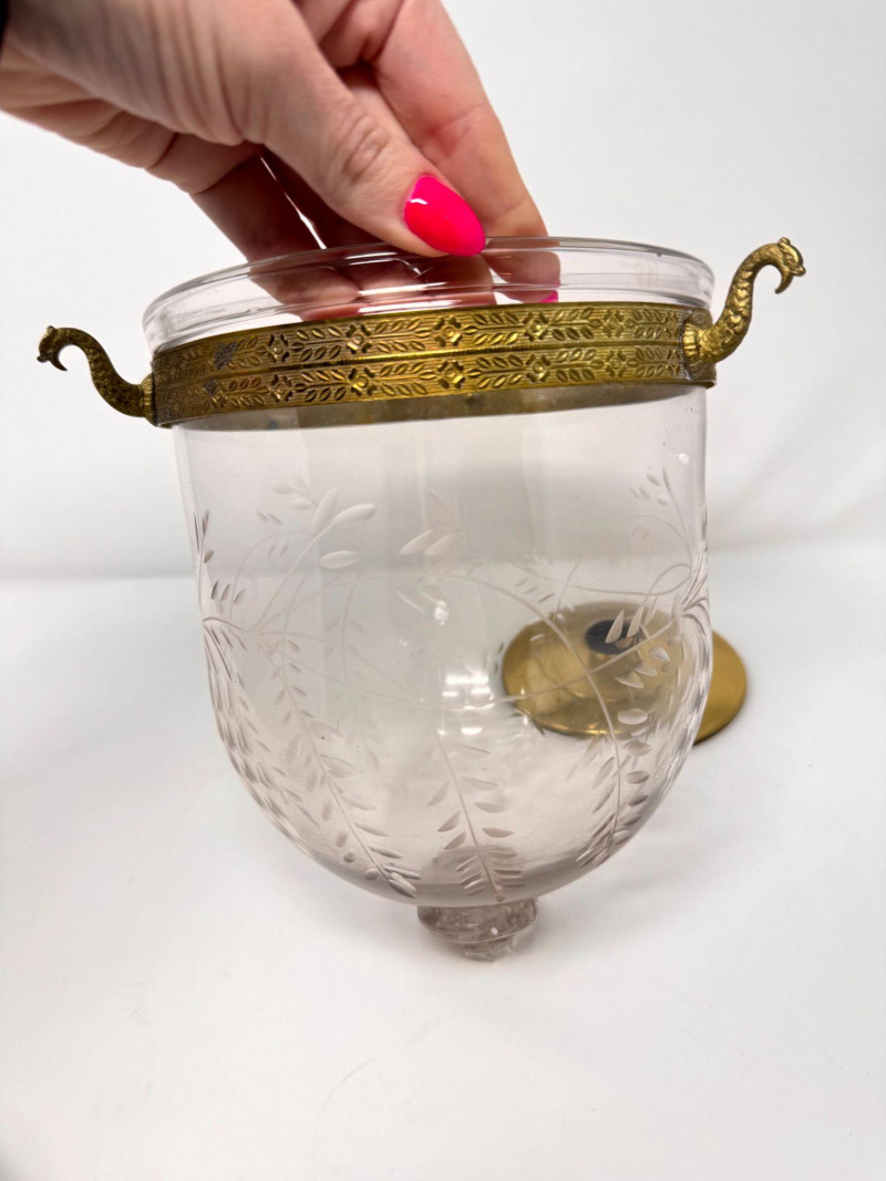 Lot # 37 - Vintage Style Bell Jar Hanging Light w/ Brass Details & Etched Glass