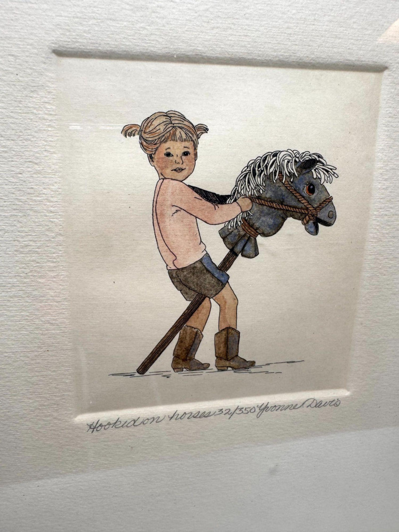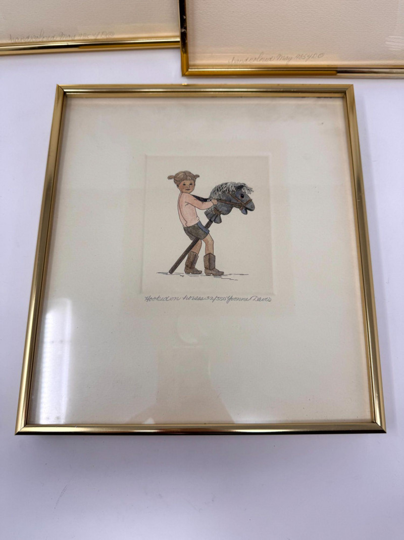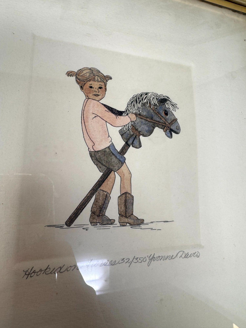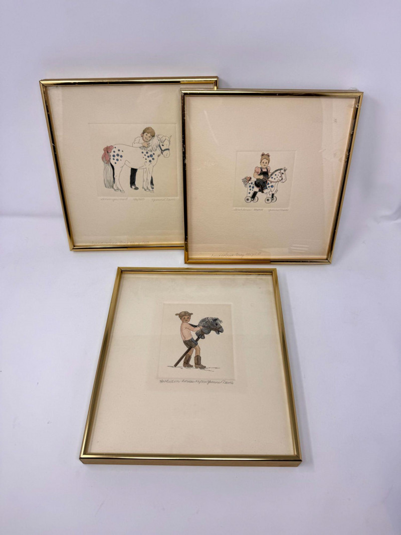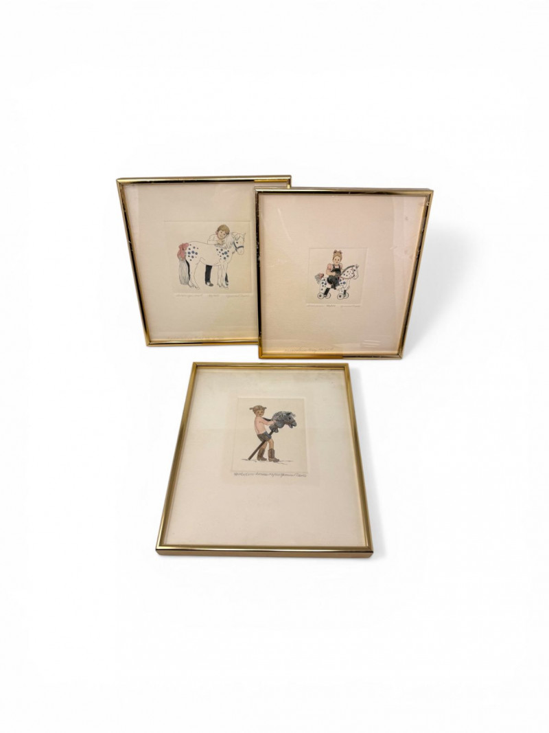 Yvonne Davis Hand Colored Signed Prints, Set of 3 - Framed.