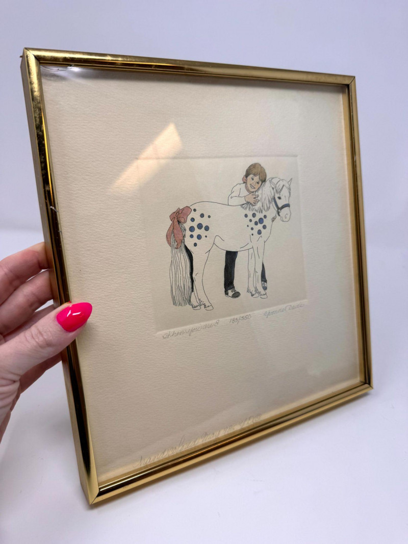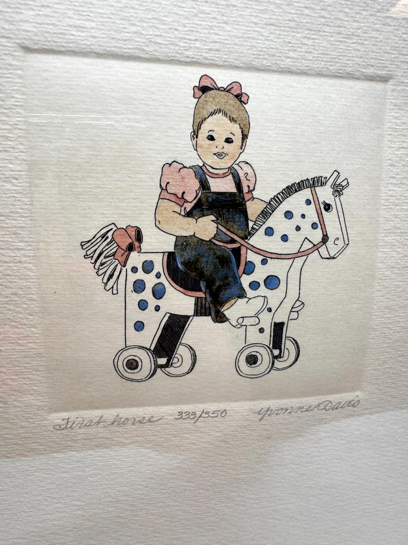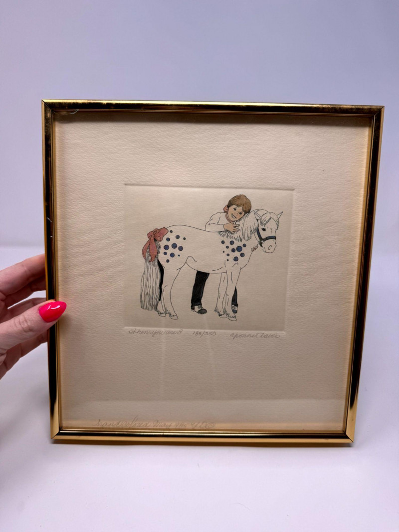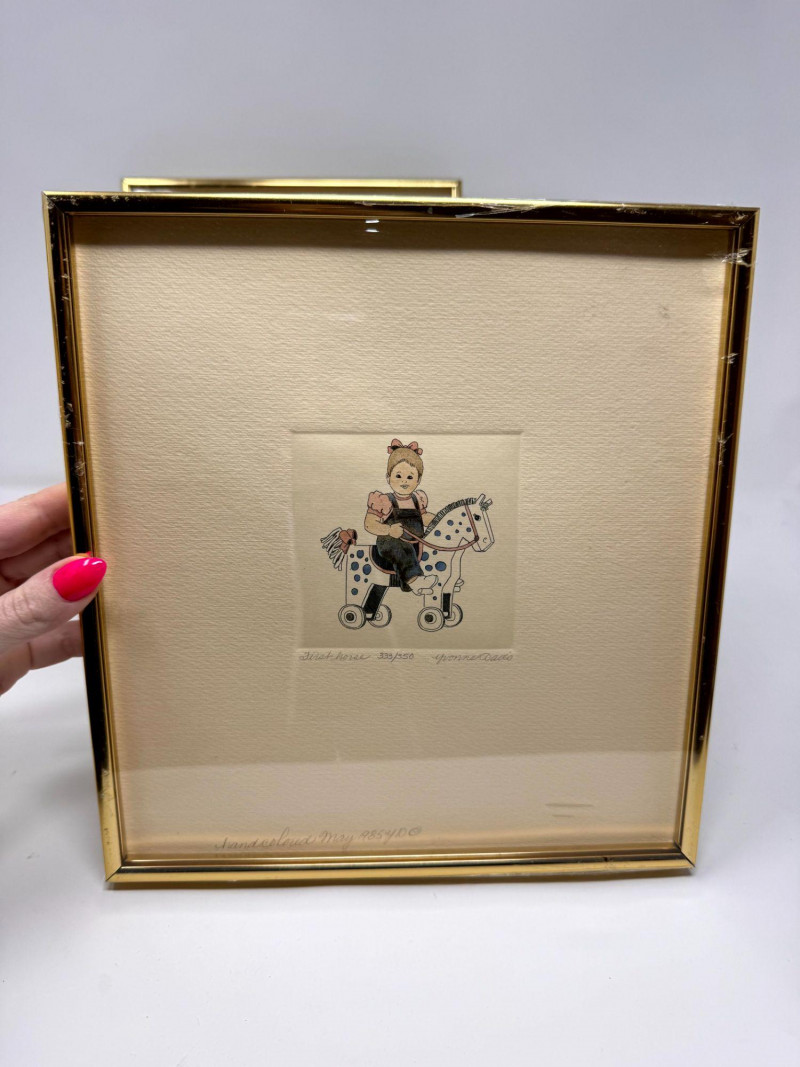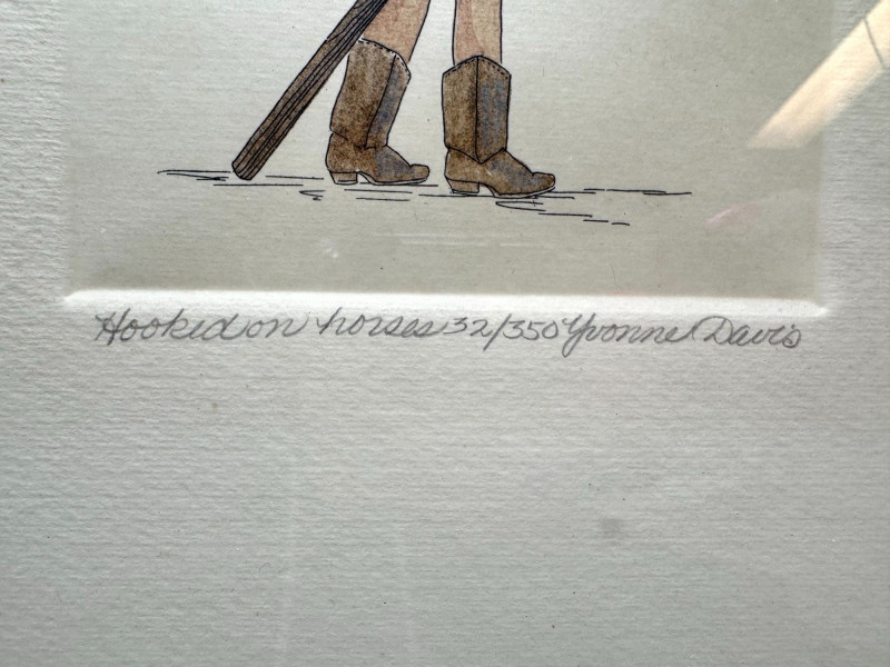 Yvonne Davis Hand Colored Signed Prints, Set of 3 - Framed.