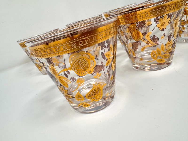 Lot # 46 - MCM Vintage Chantilly Gold Floral Tumbler Glasses - Set of 8