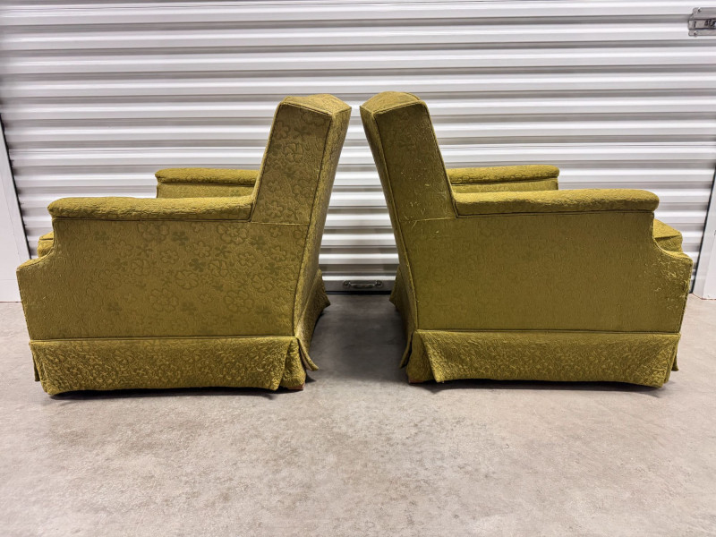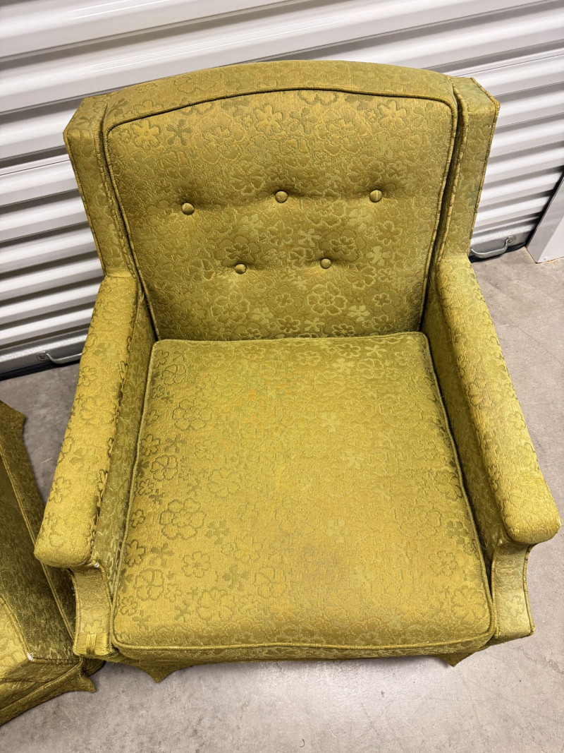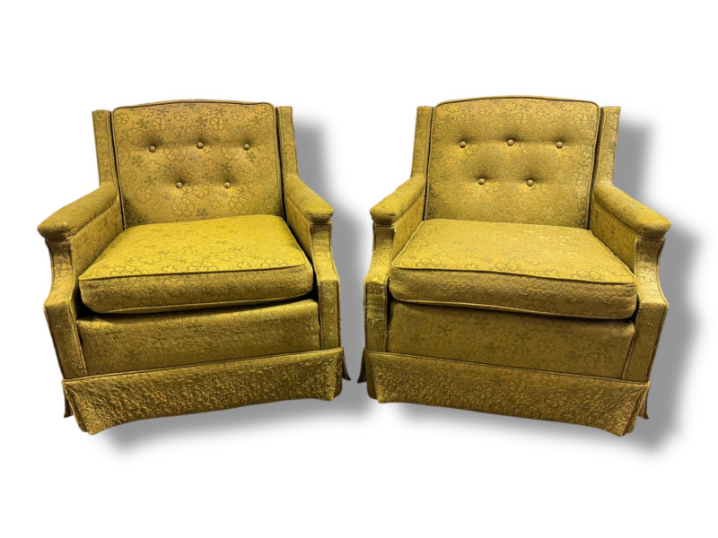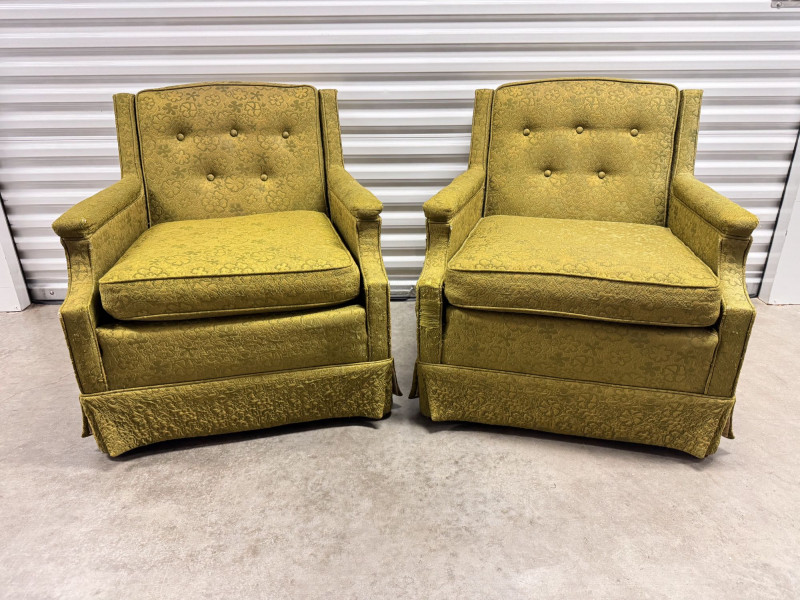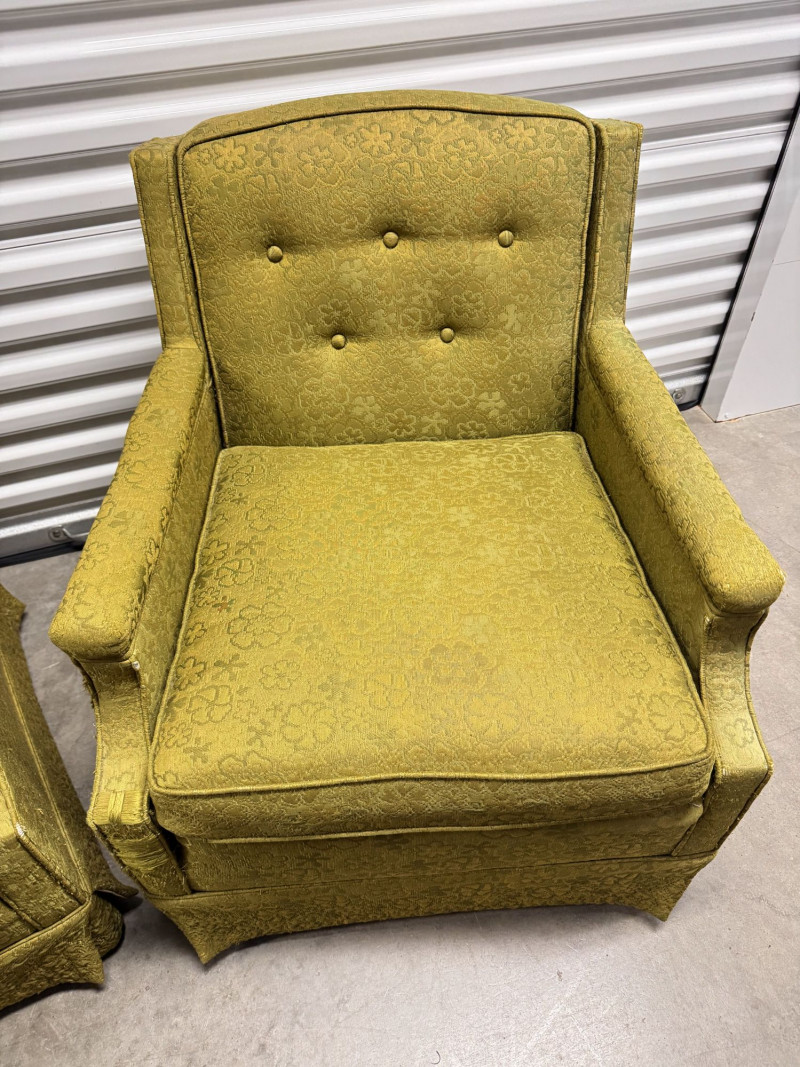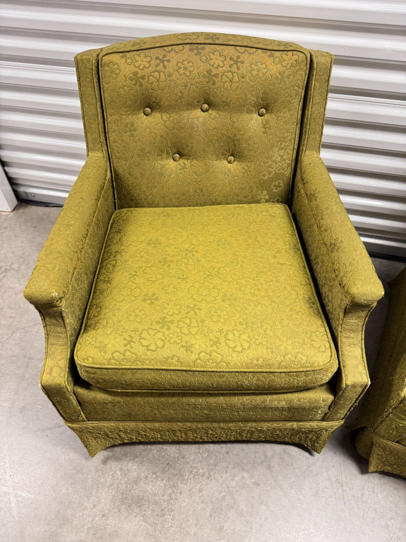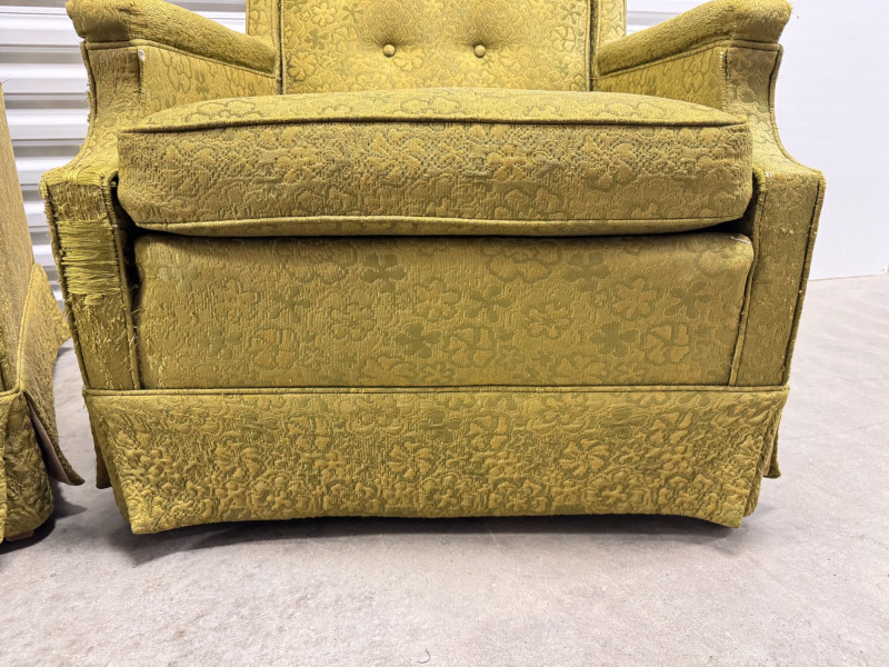 Lot # 52 - Retro Green Woodmark Upholstered Armchairs w/ Tufted Backs- Floral