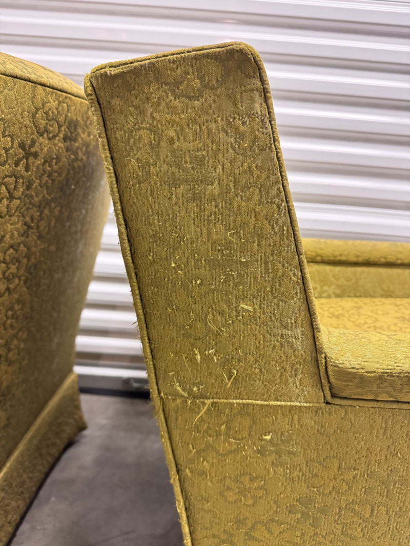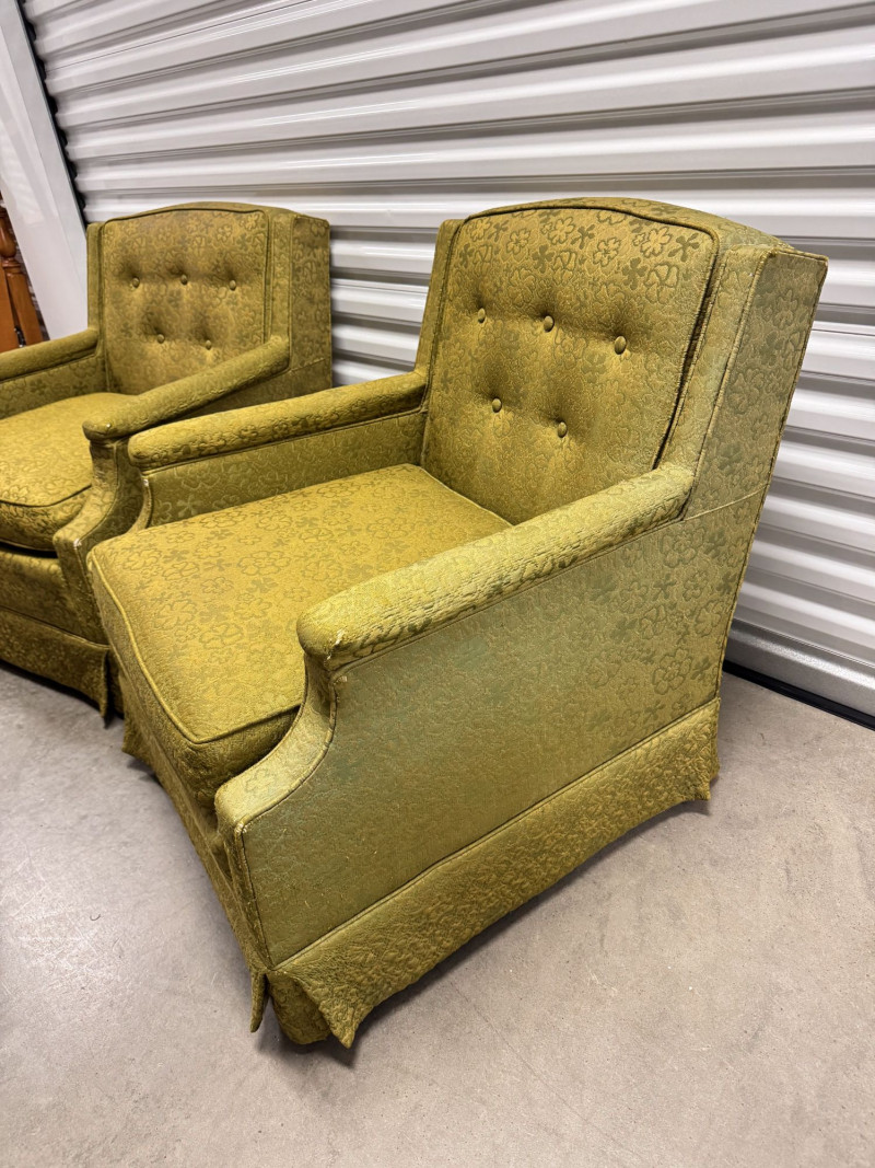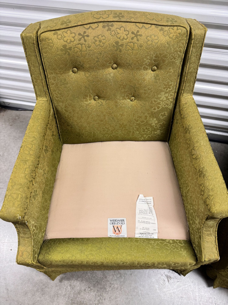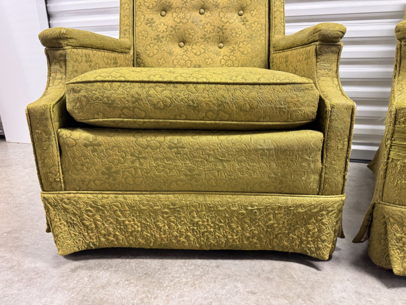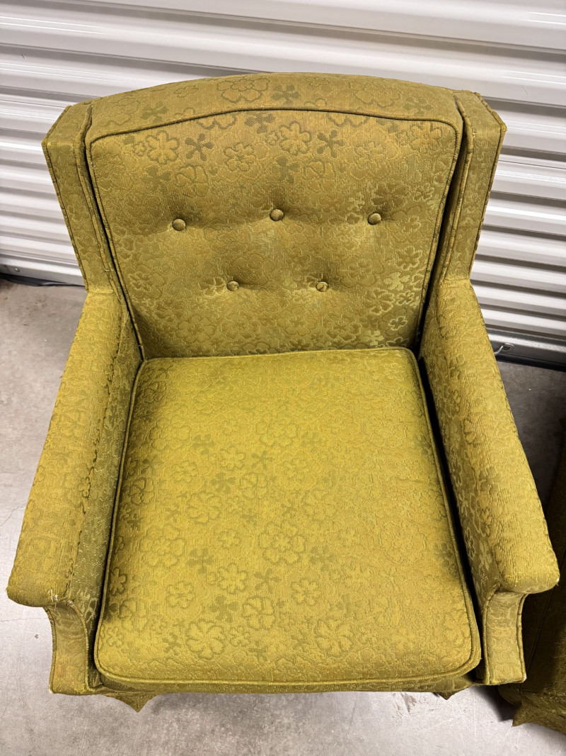 Retro Green Woodmark Upholstered Armchairs w/ Tufted Backs- Floral