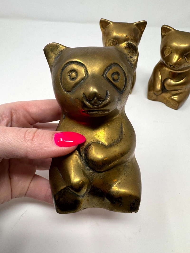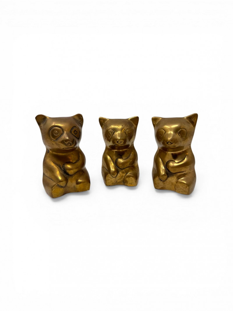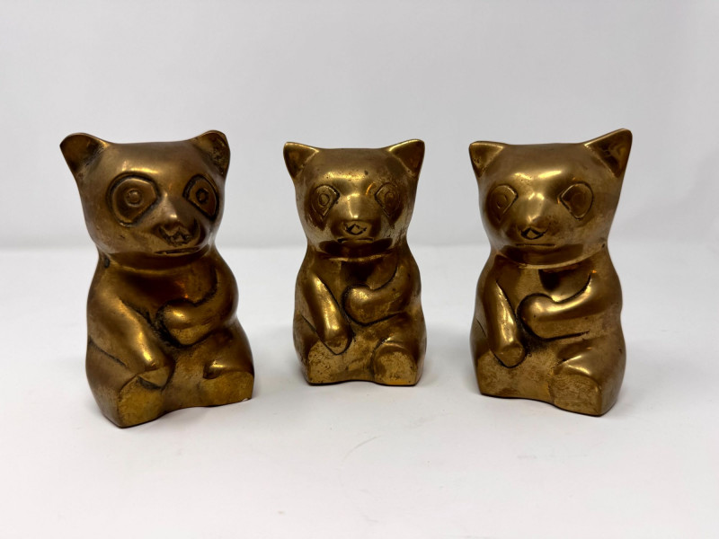 Vintage Brass Panda Bear Figurines - Set of 3.