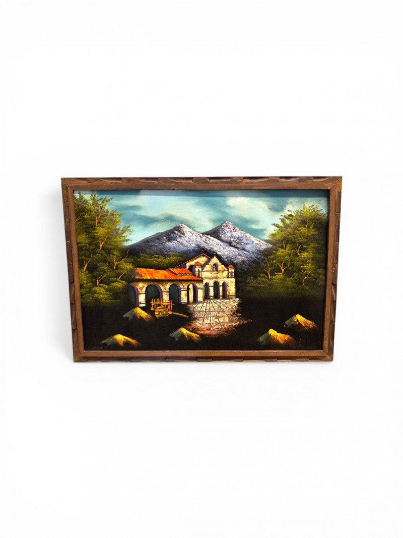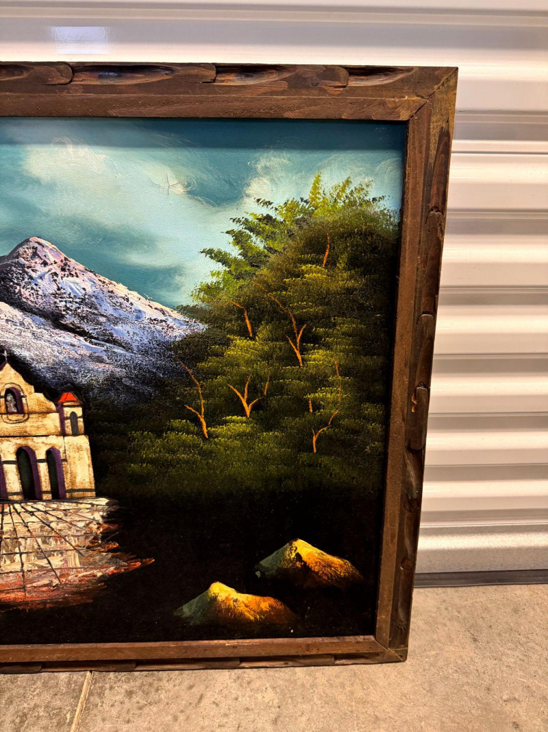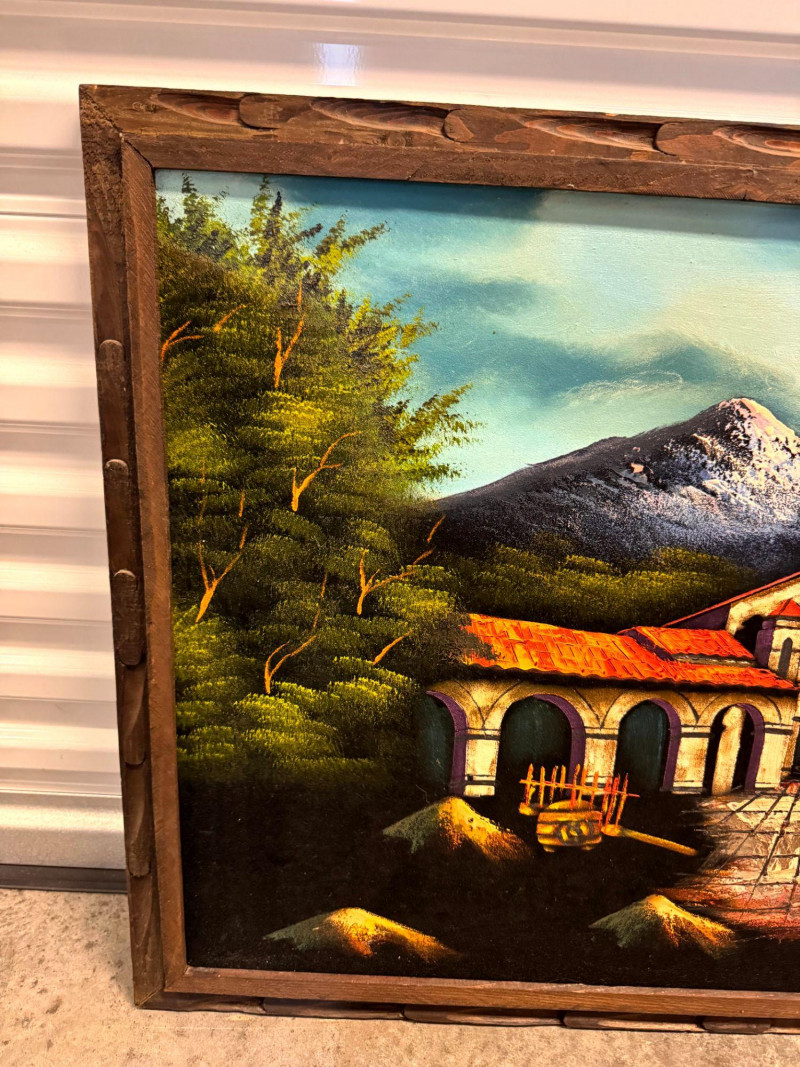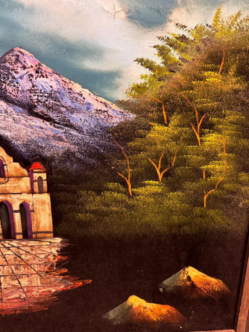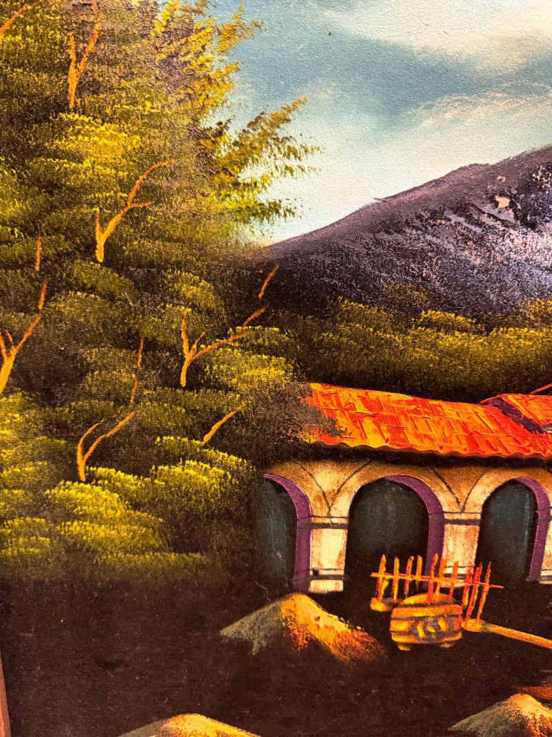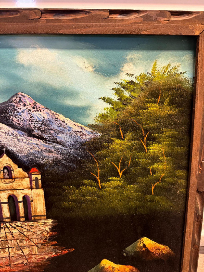 Lot # 65 - Large MCM Black Light Velvet Painting - Mountain Villa Scene