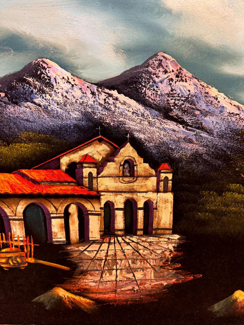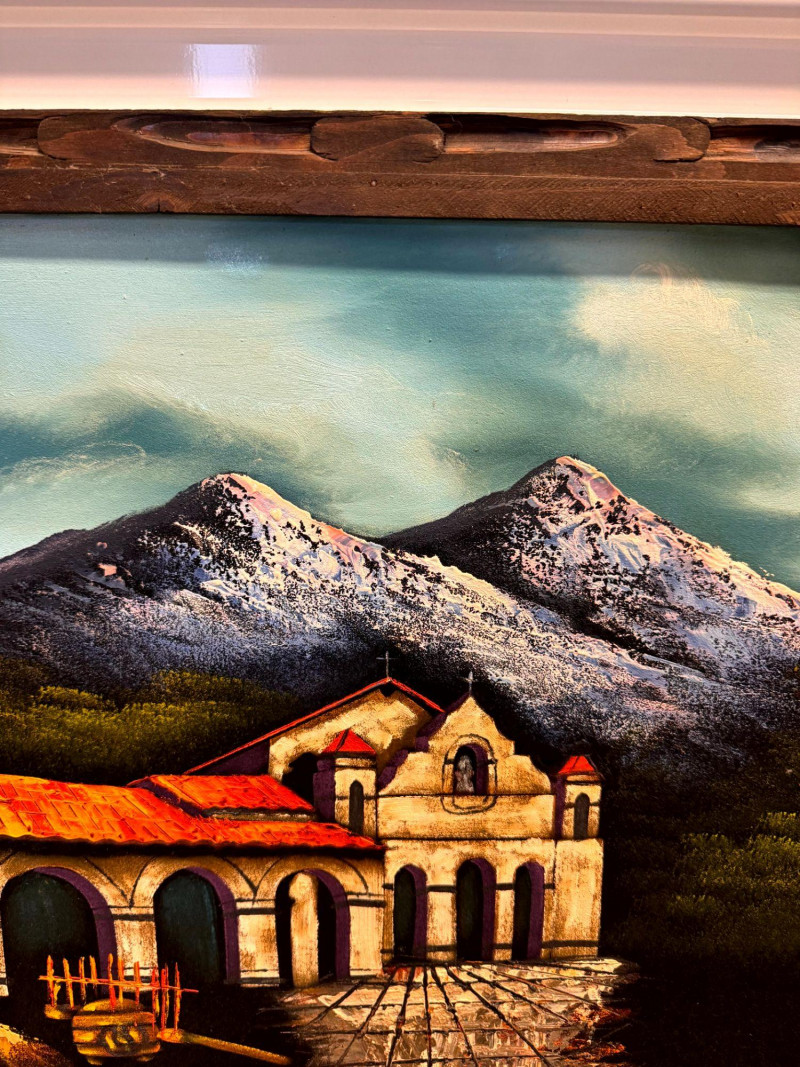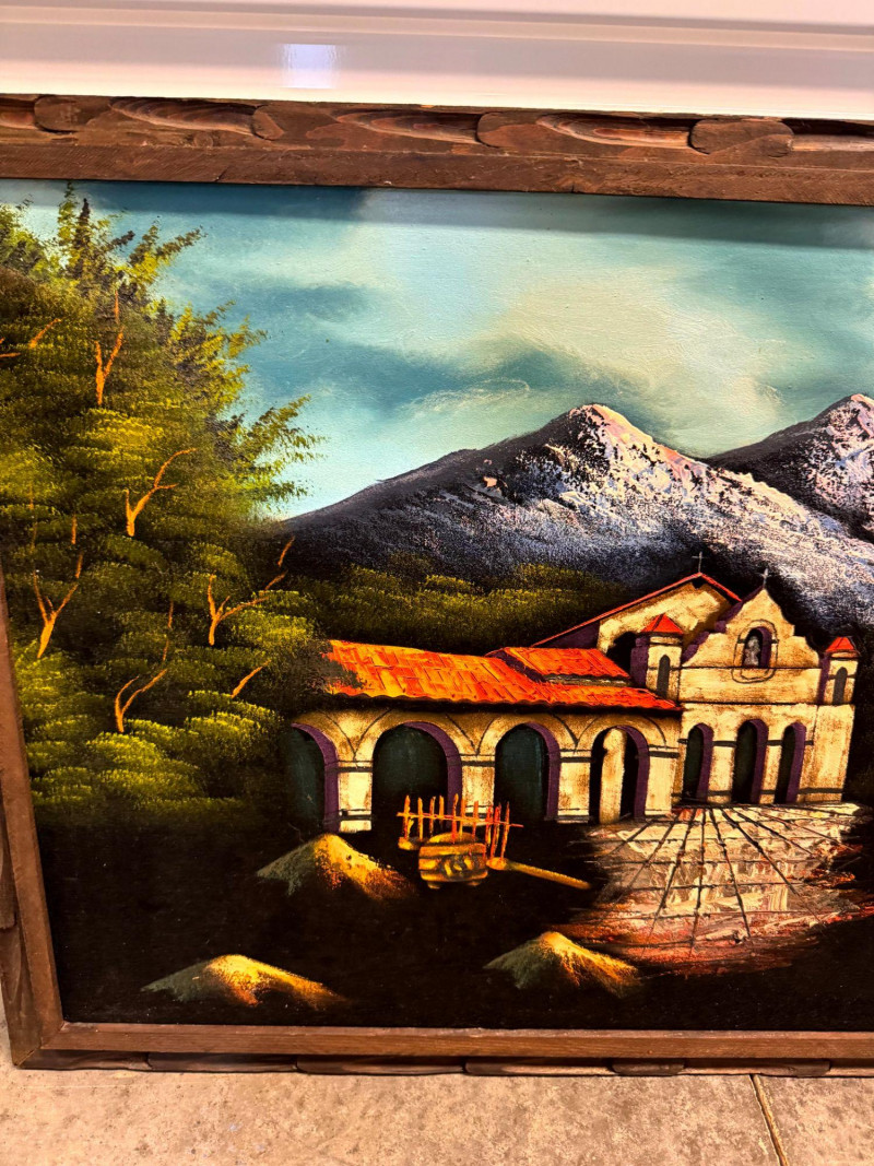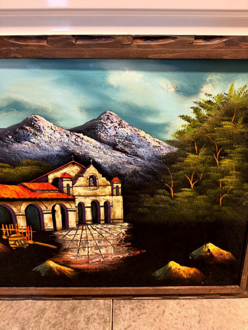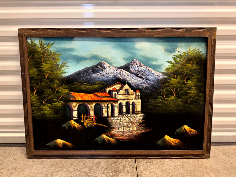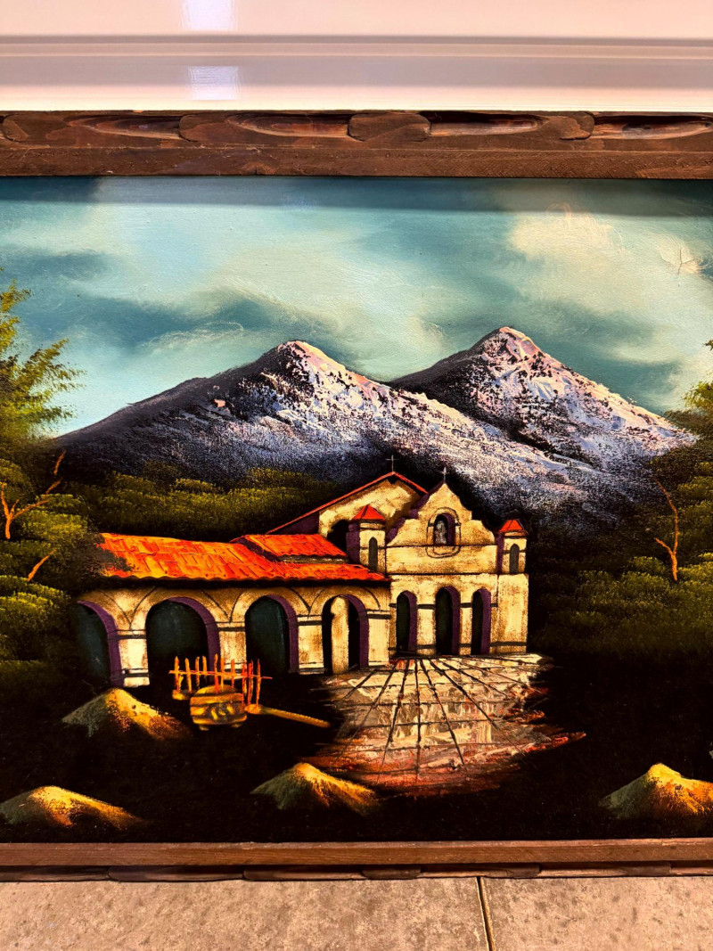 Lot # 65 - Large MCM Black Light Velvet Painting - Mountain Villa Scene