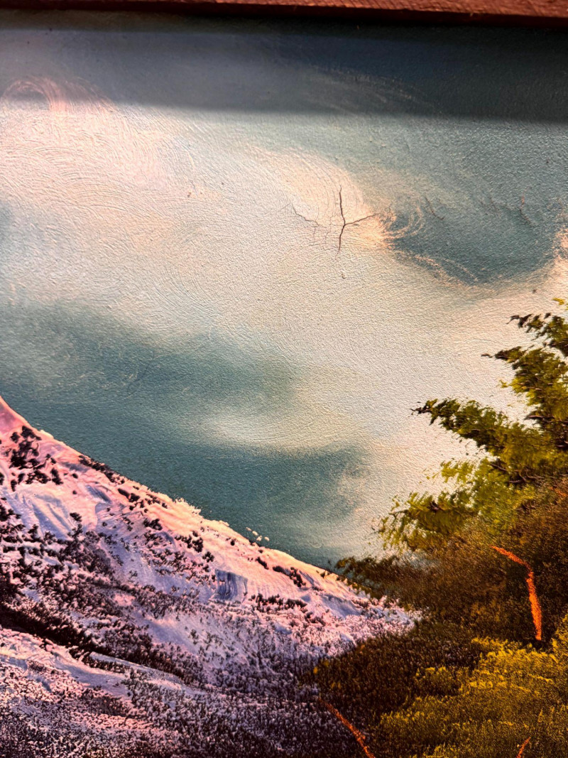 Large MCM Black Light Velvet Painting - Mountain Villa Scene.