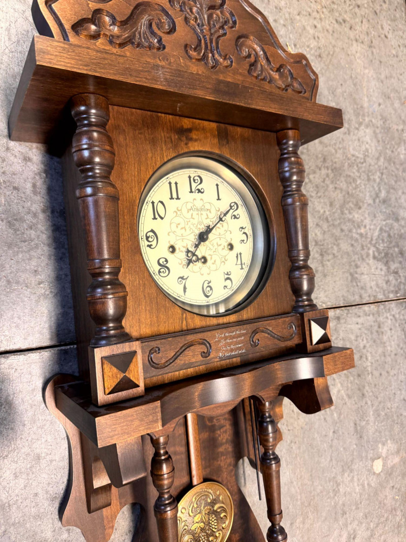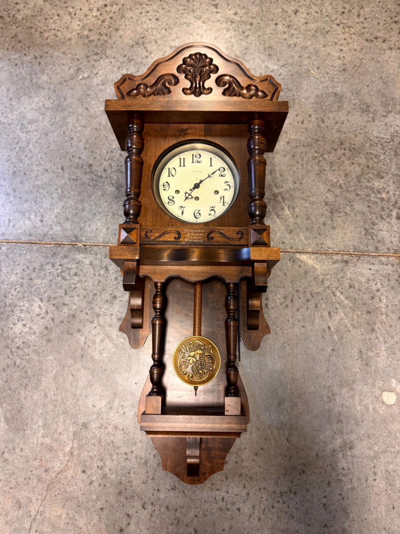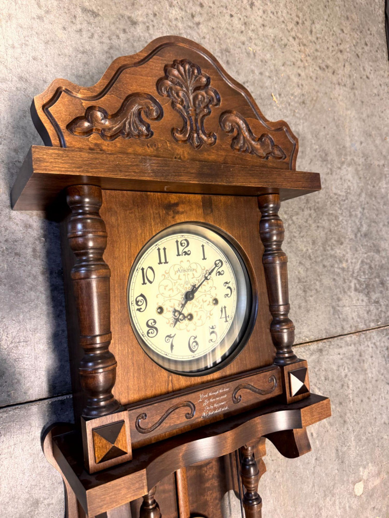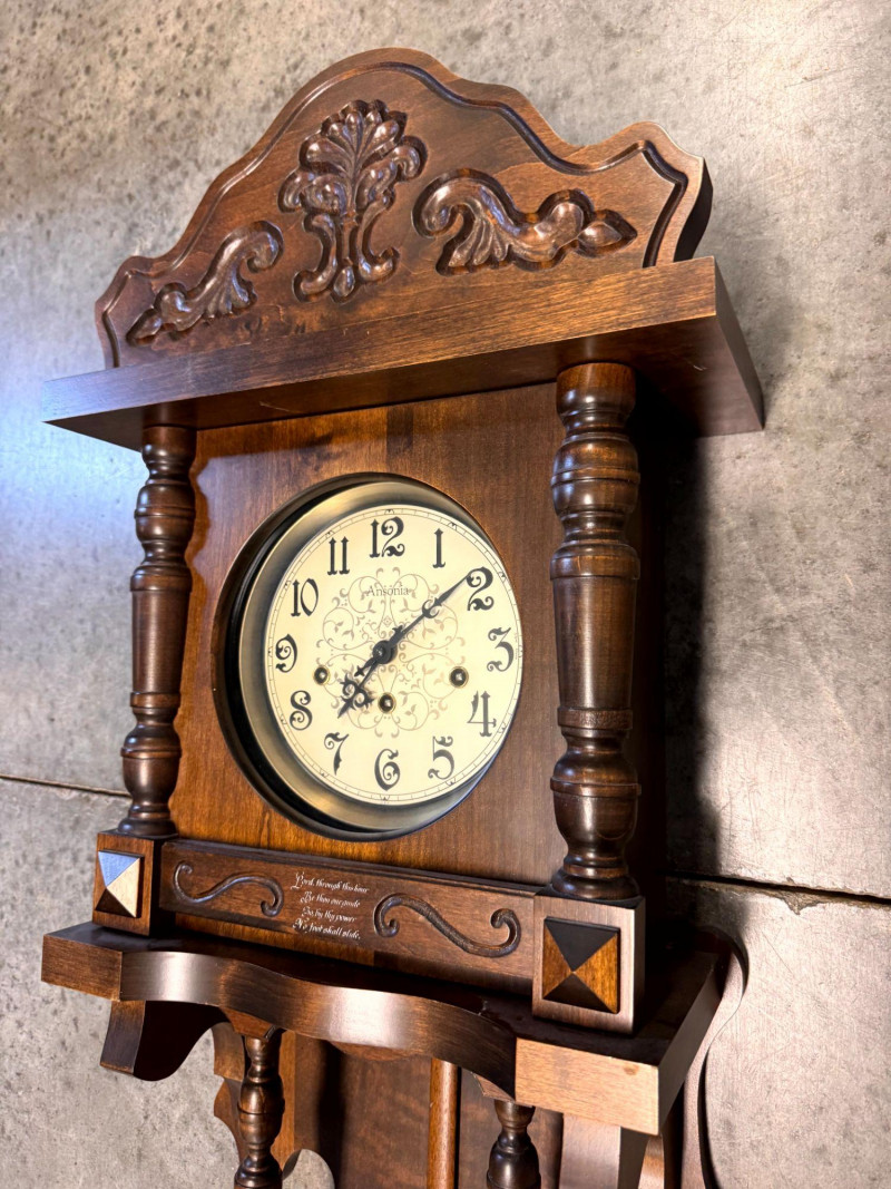 Large Ansonia Pendulum Wall Clock Wood Case w/ Keys.
