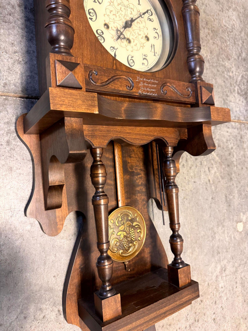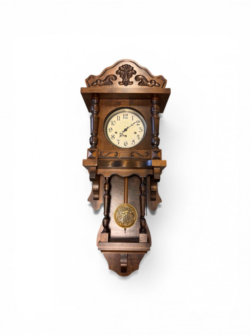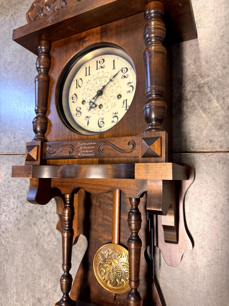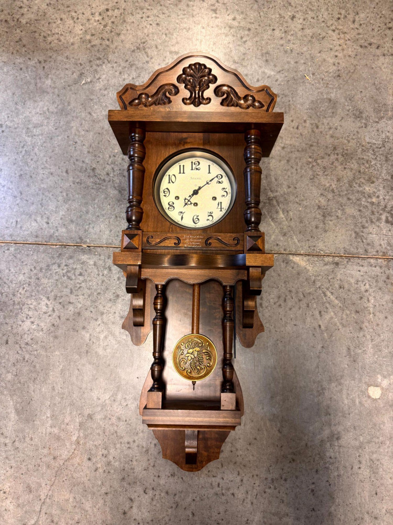 Large Ansonia Pendulum Wall Clock Wood Case w/ Keys.