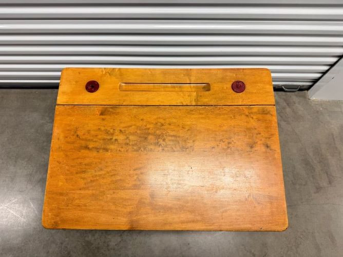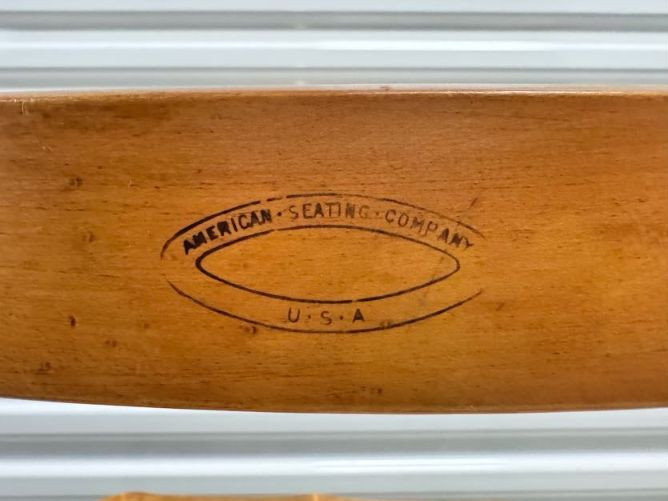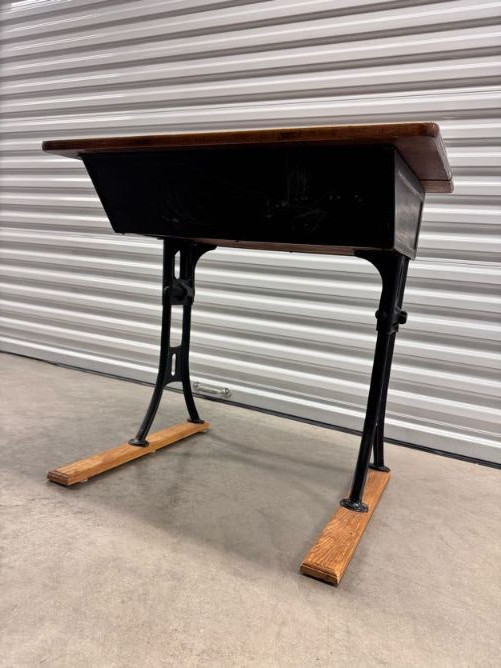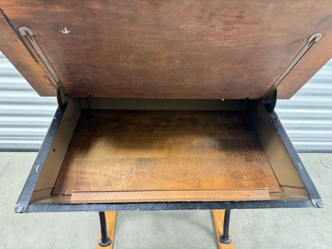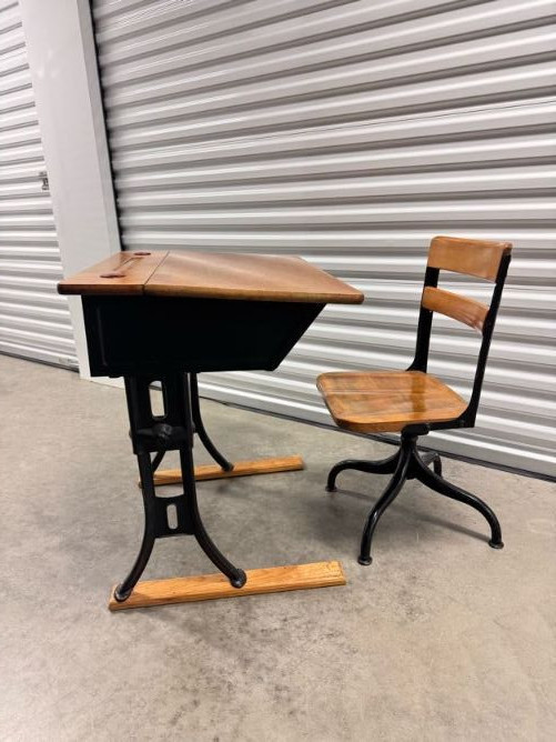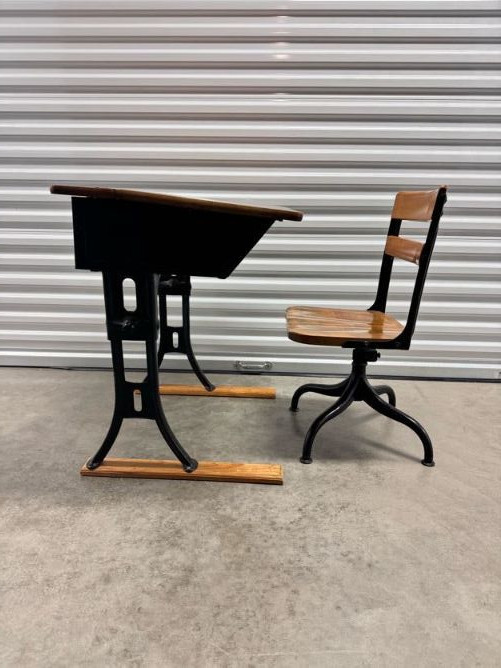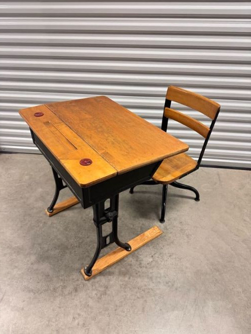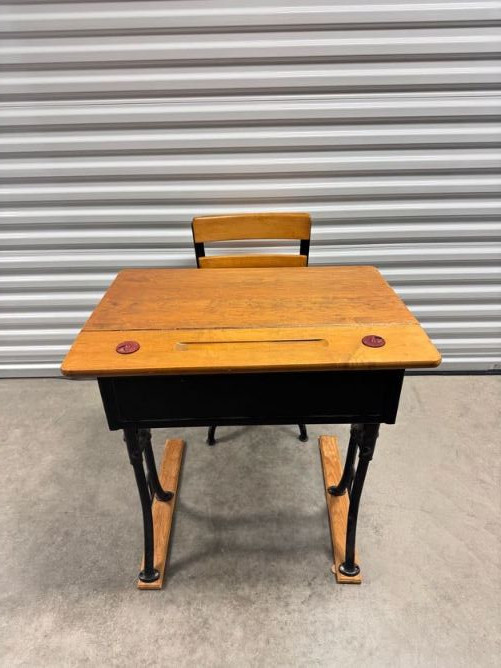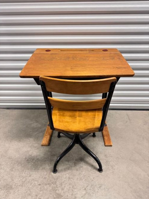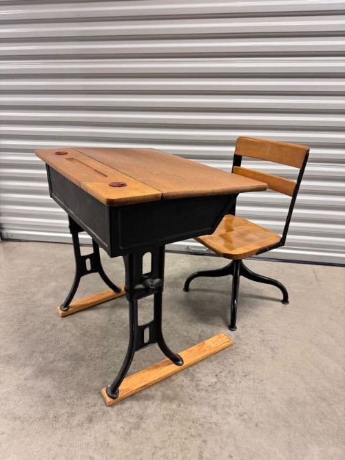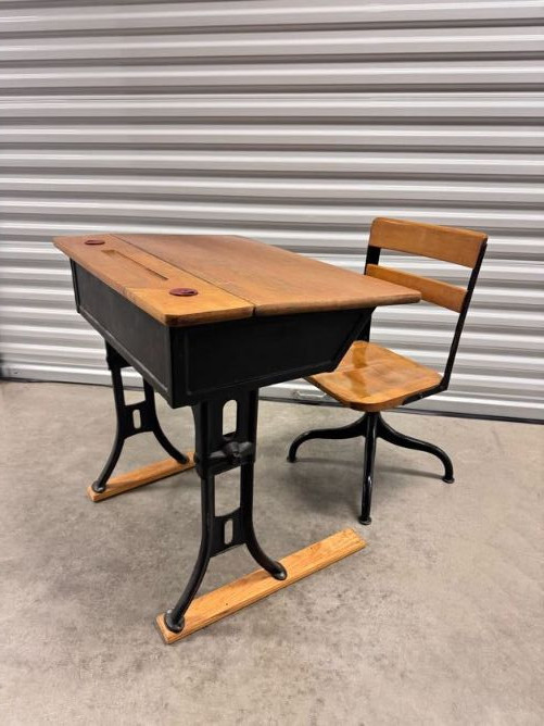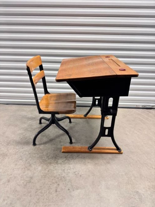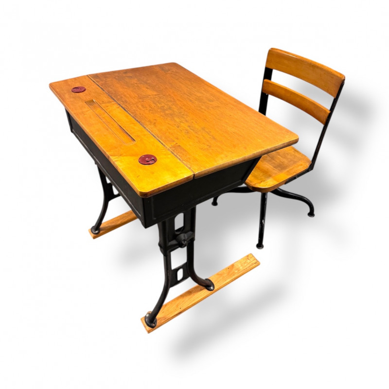 Antique School Desk w/ Inkwells & American Seating Chair Set.