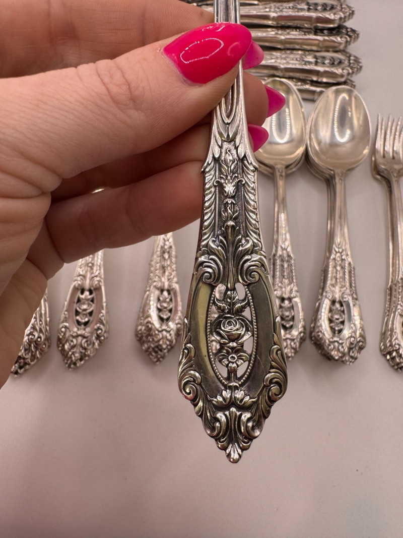 Wallace Rose Point Sterling Silver Flatware Set - Service 8+ Includes: Weight (by group):