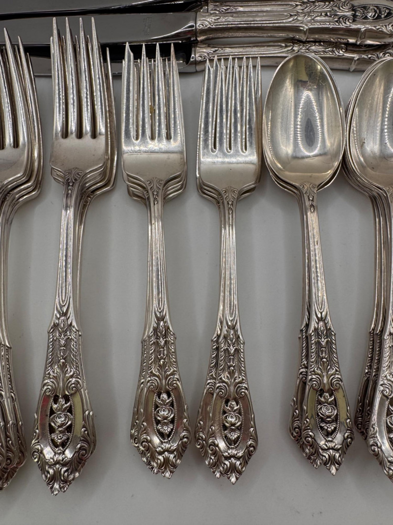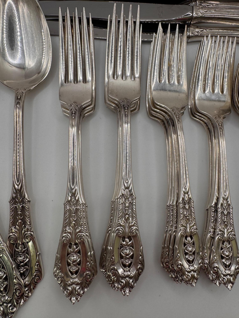 Lot # 109 - Wallace Rose Point Sterling Silver Flatware Set - Service 8+