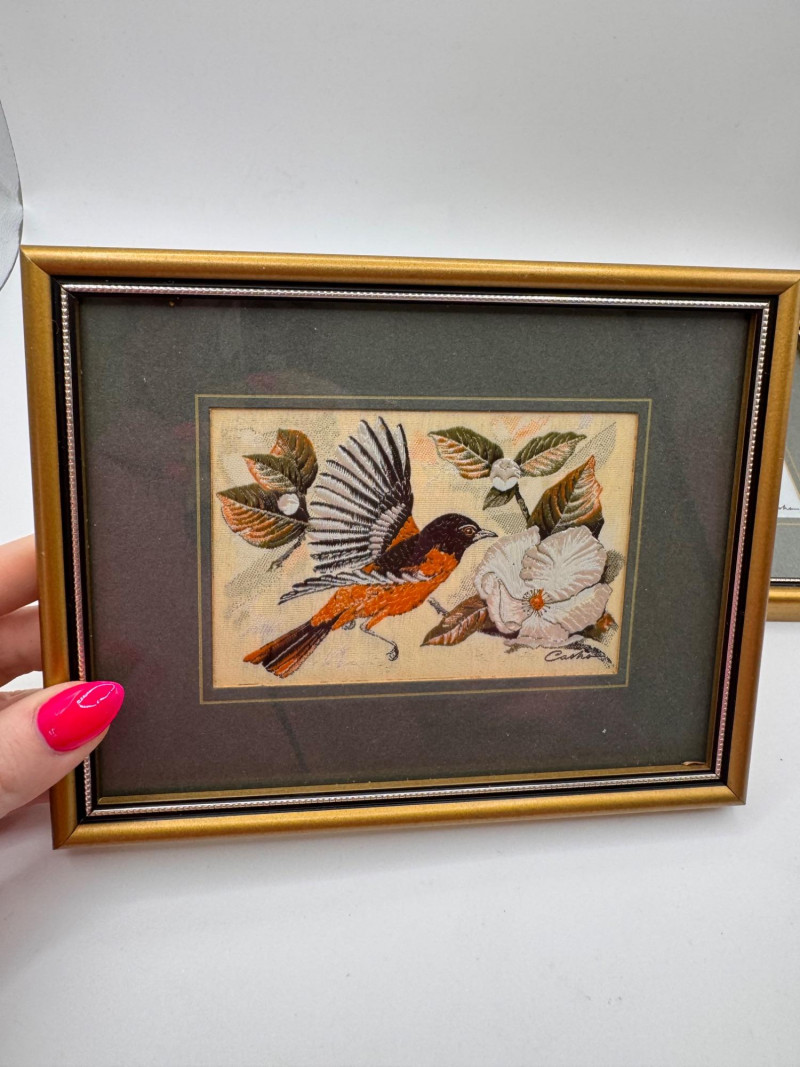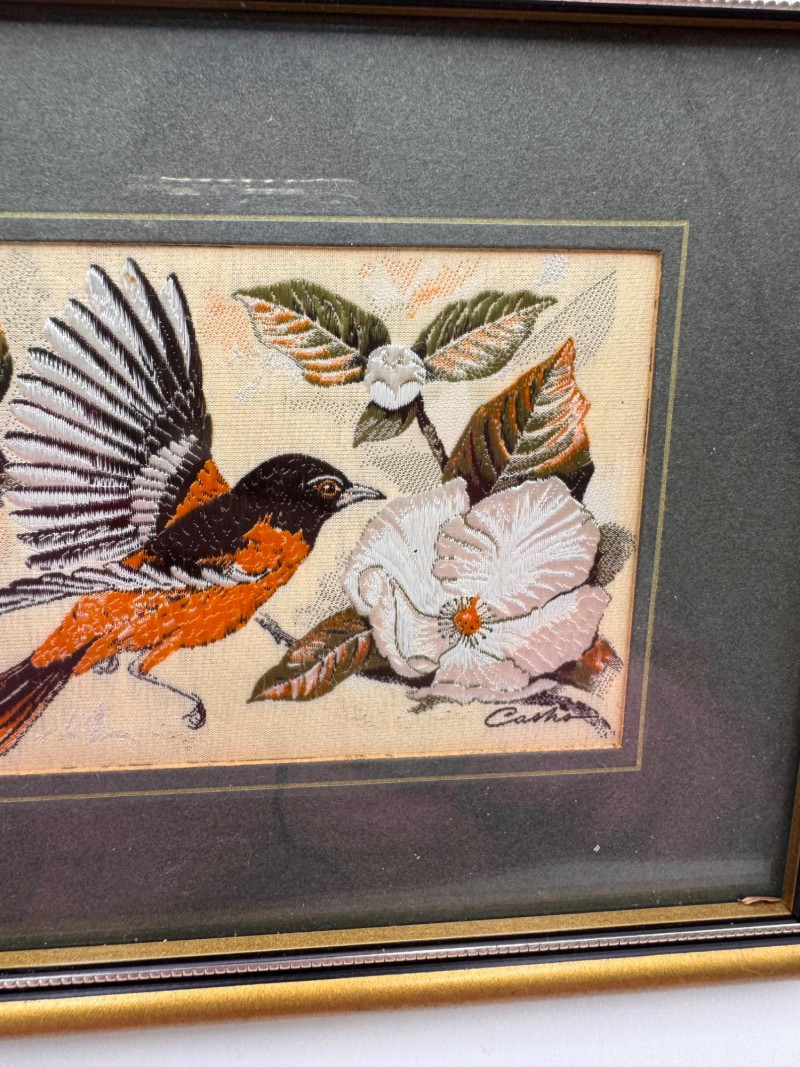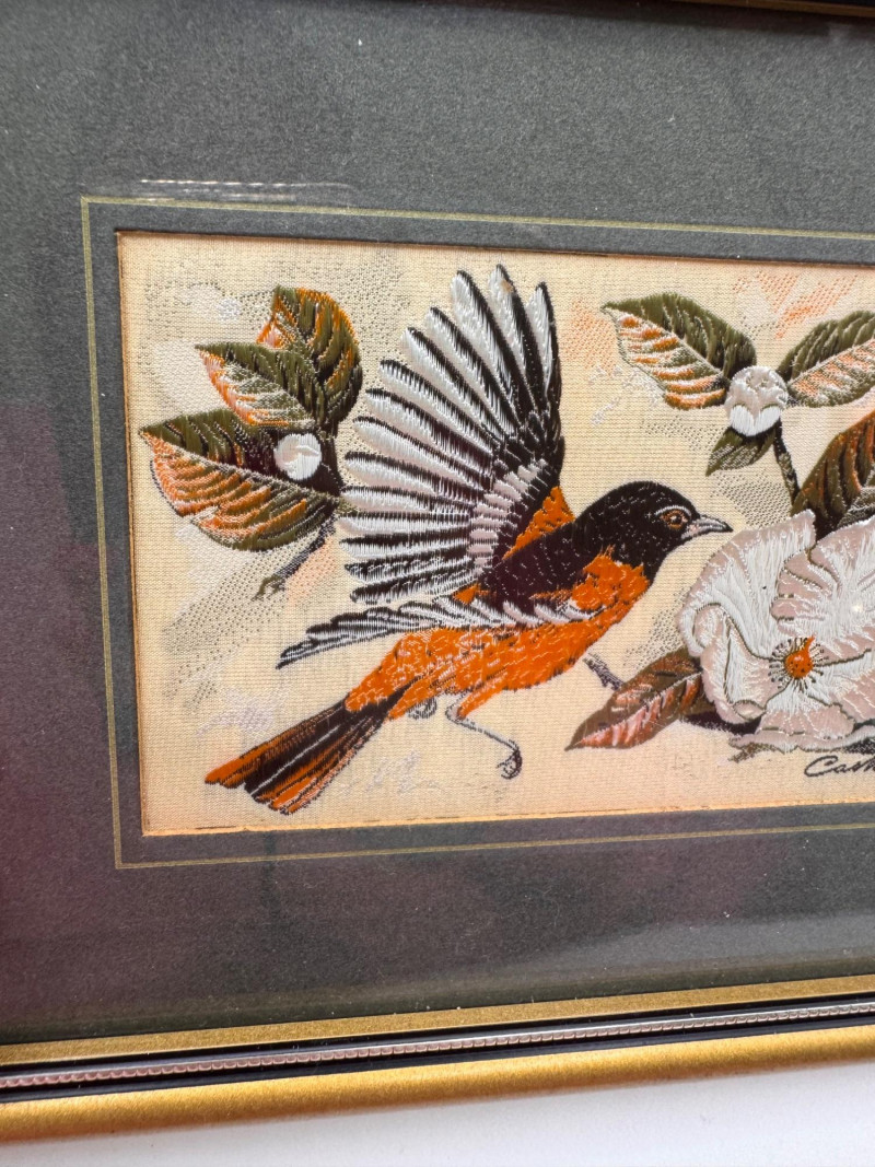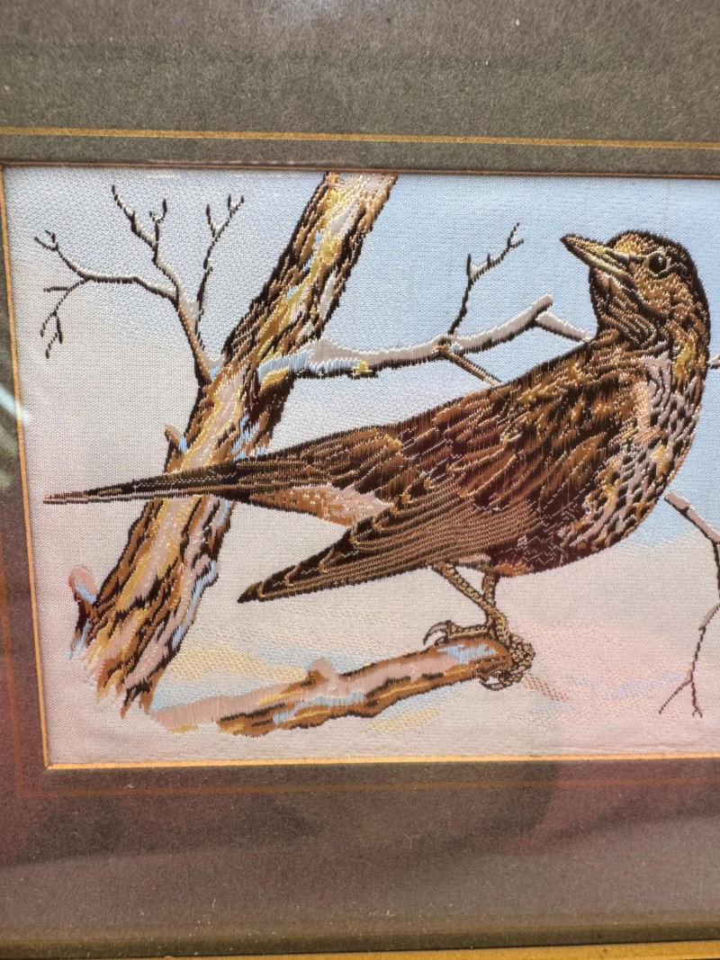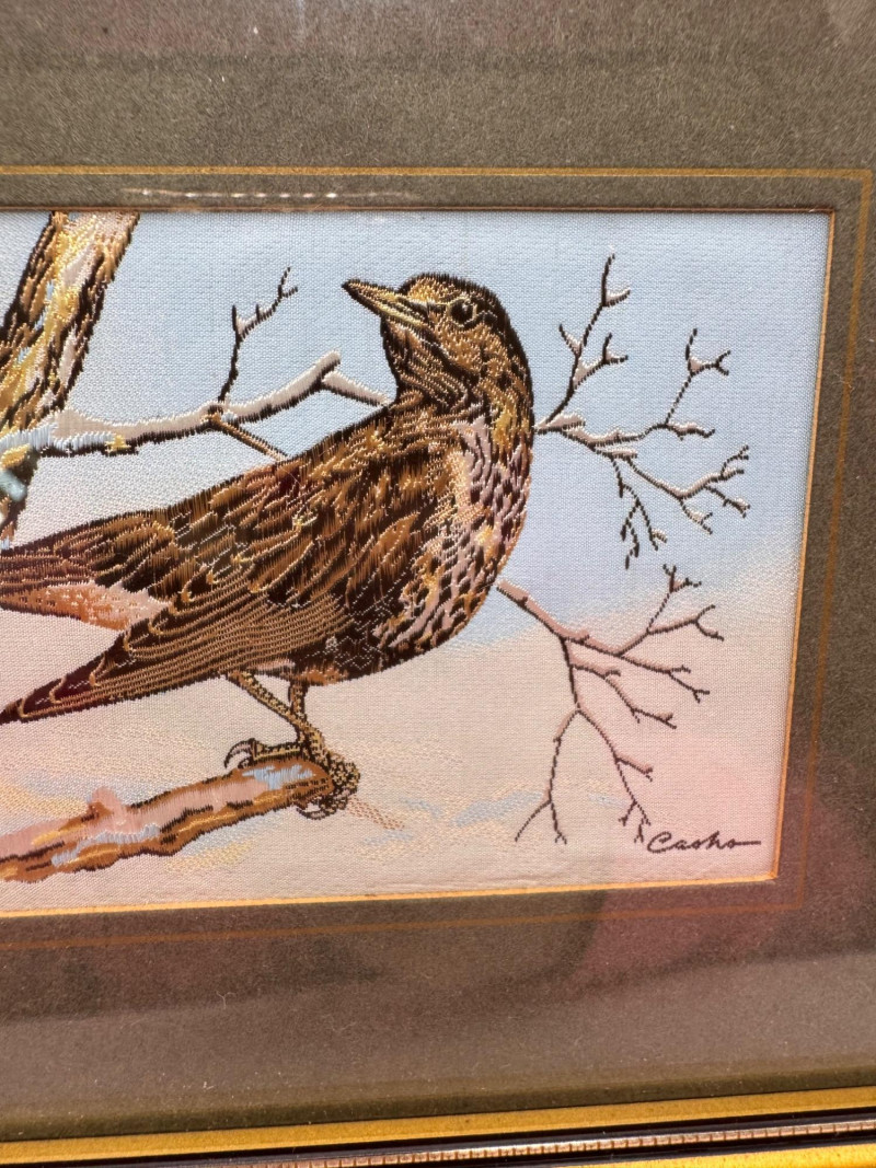 Lot # 110 - Cashs Woven Silk Bird & Floral Framed Pictures - Set of 3