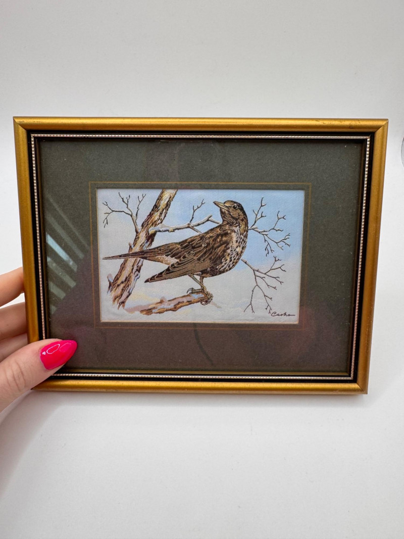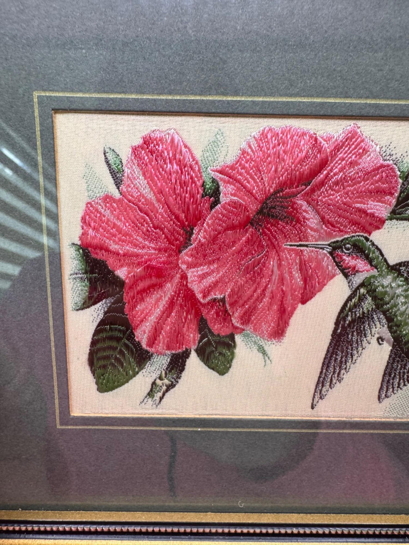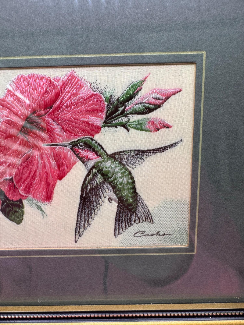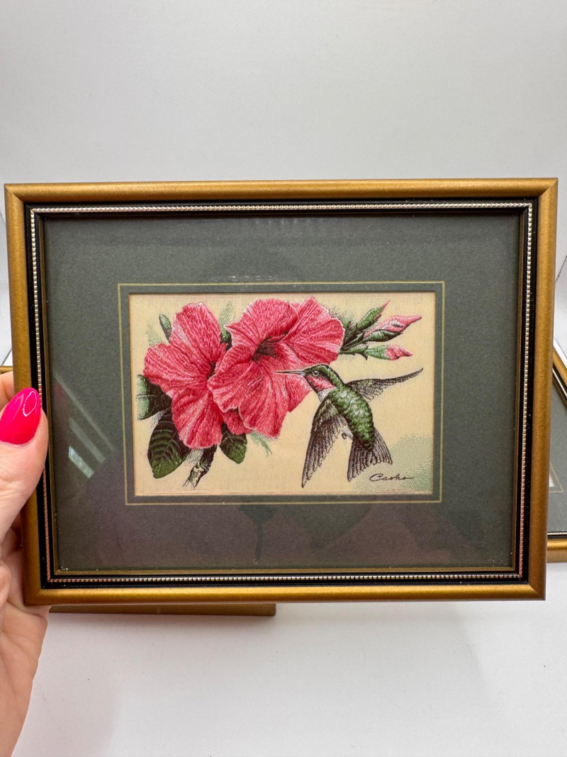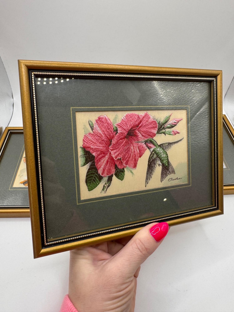 Lot # 110 - Cashs Woven Silk Bird & Floral Framed Pictures - Set of 3