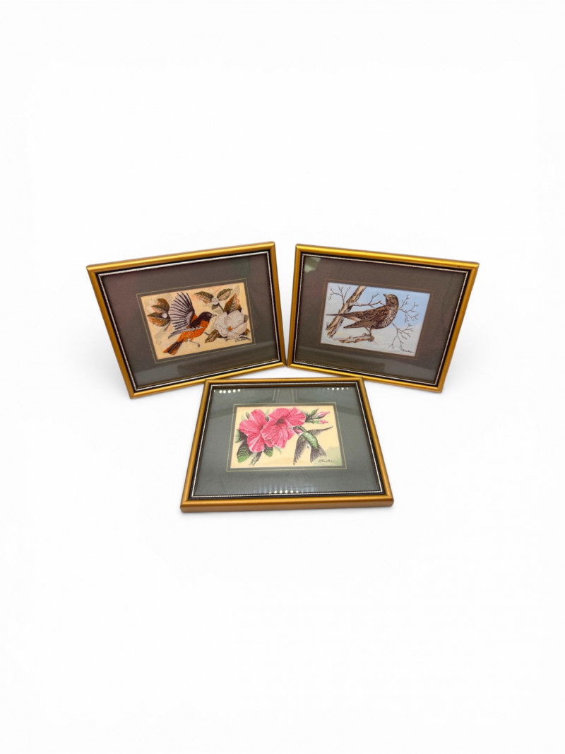Cashs Woven Silk Bird & Floral Framed Pictures - Set of 3.