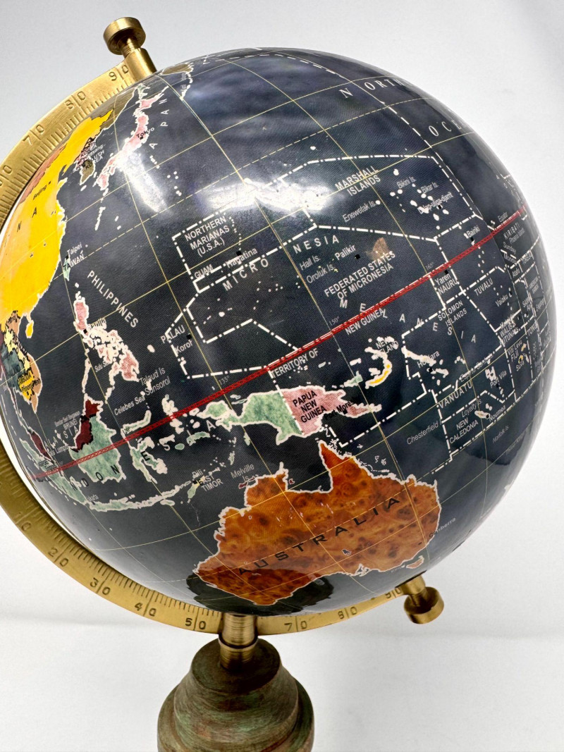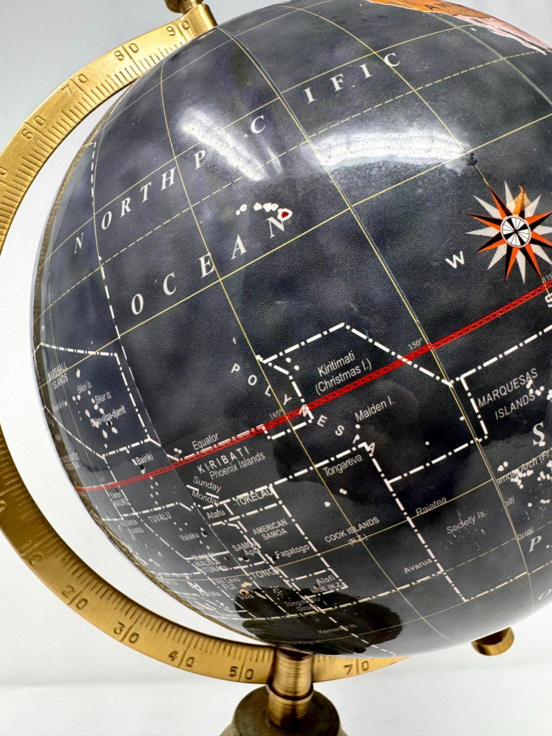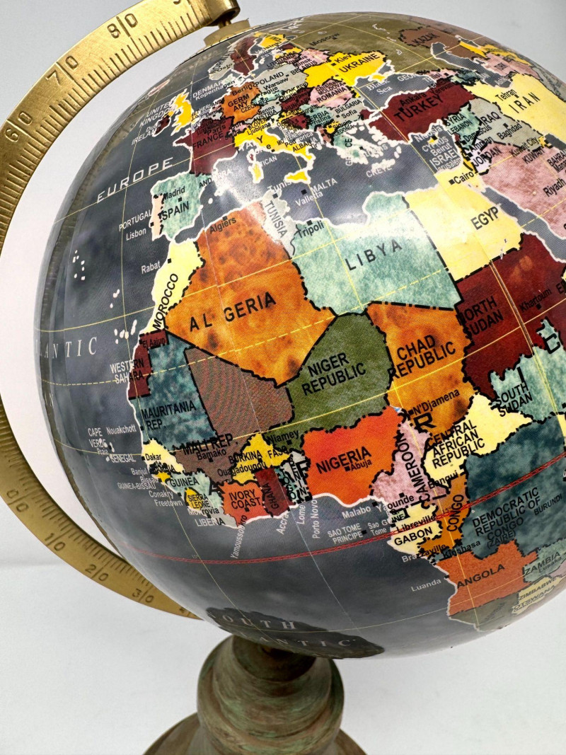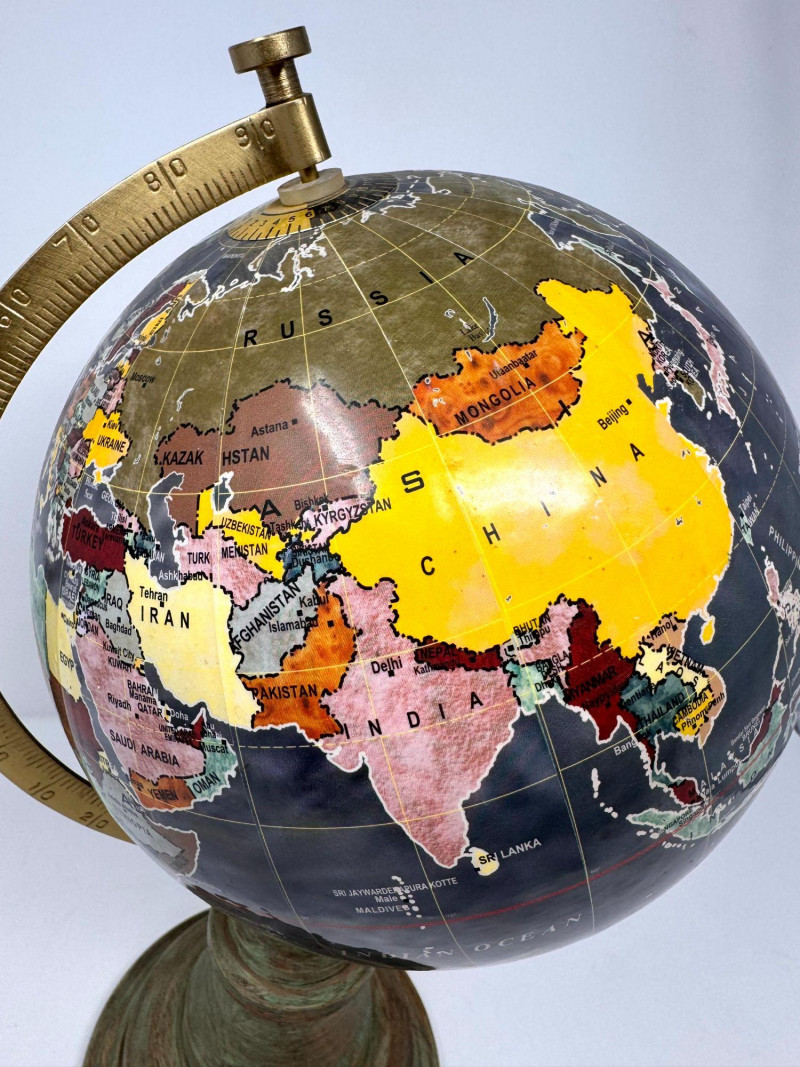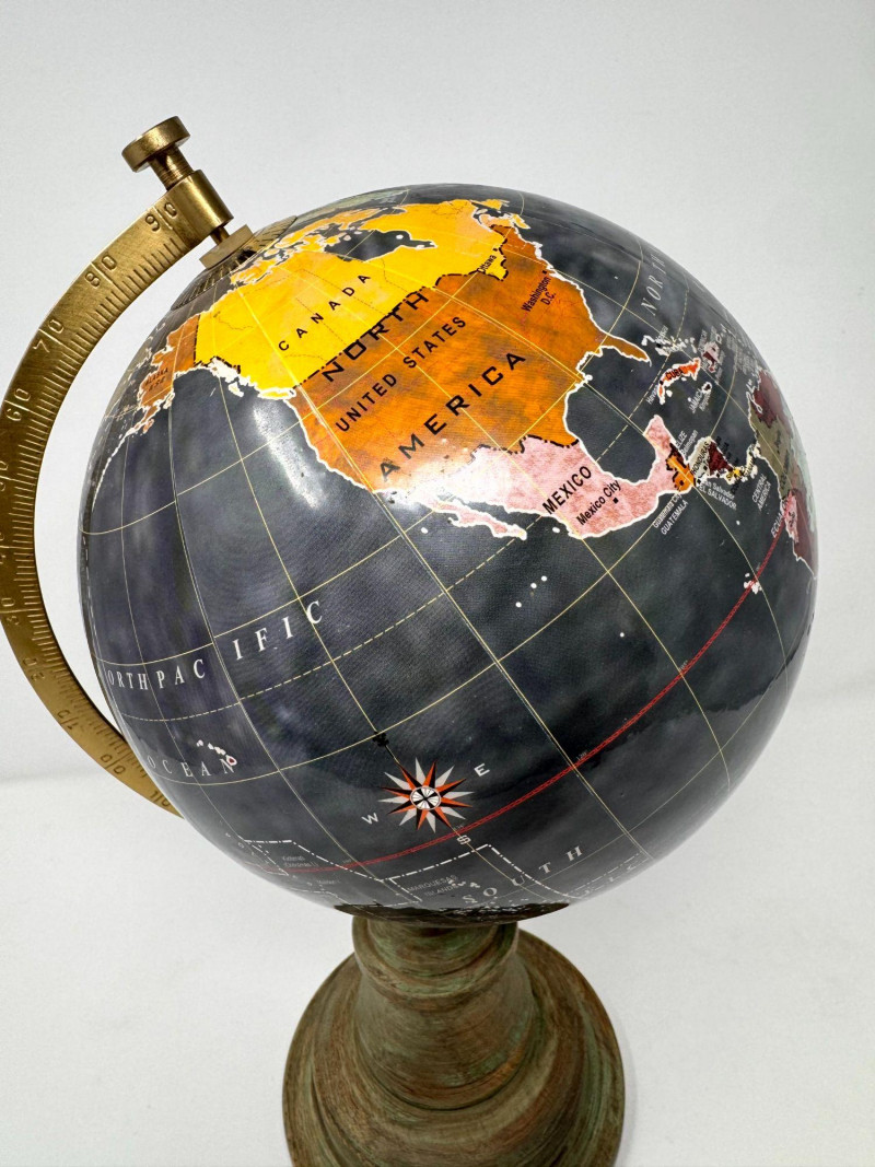 Modern Desktop World Globe, Wood Base & Brass Meridian.