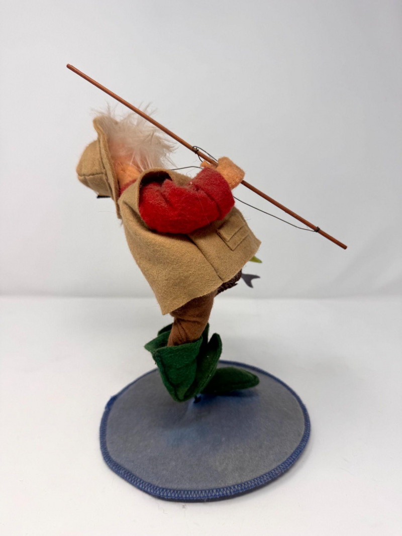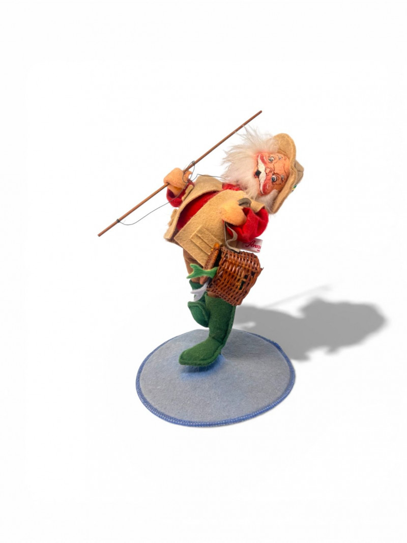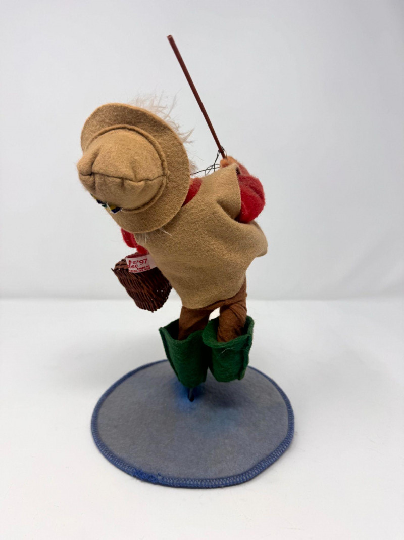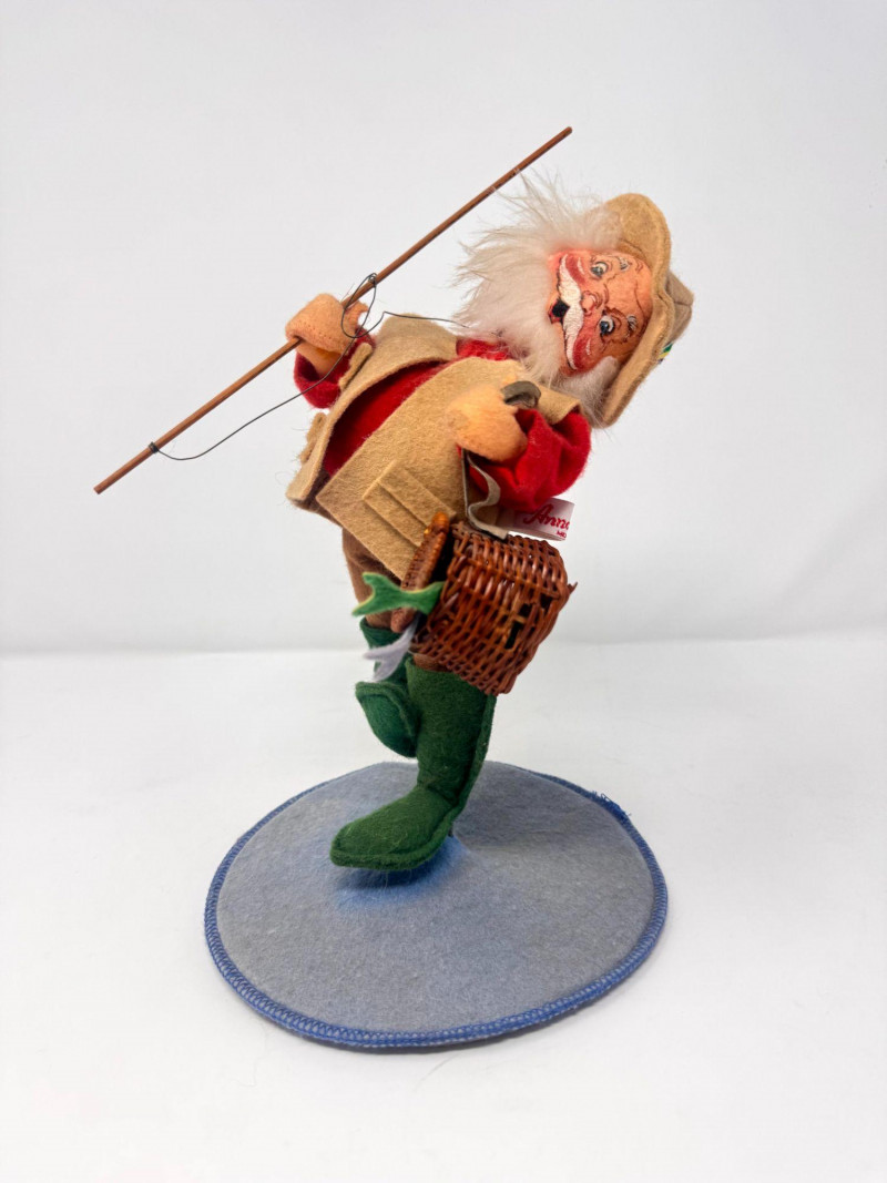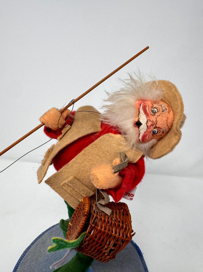 Annalee Mobilitee 1997 Fishing Santa Doll w/ Rod & Basket Figure.