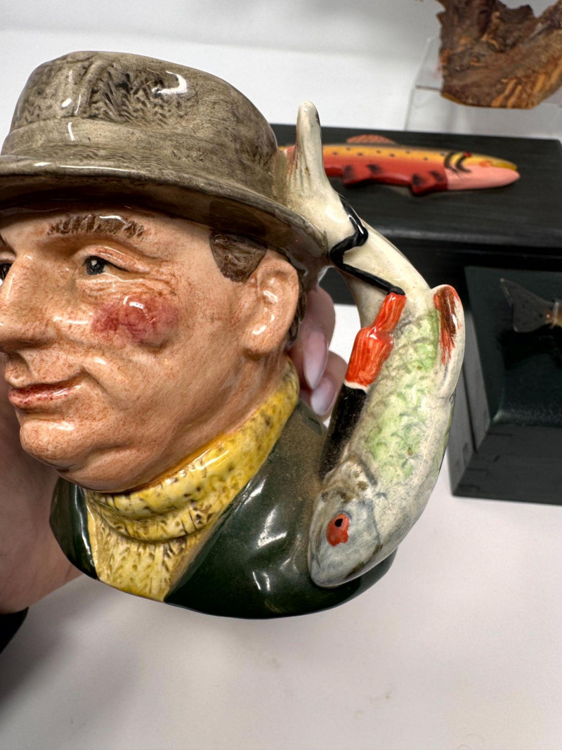 Lot # 28 - Royal Doulton Angler Jug w/ Carved Fish & Box Collectibles