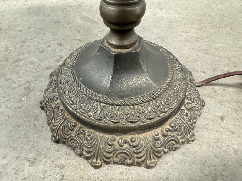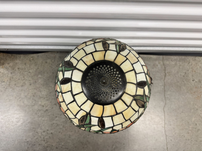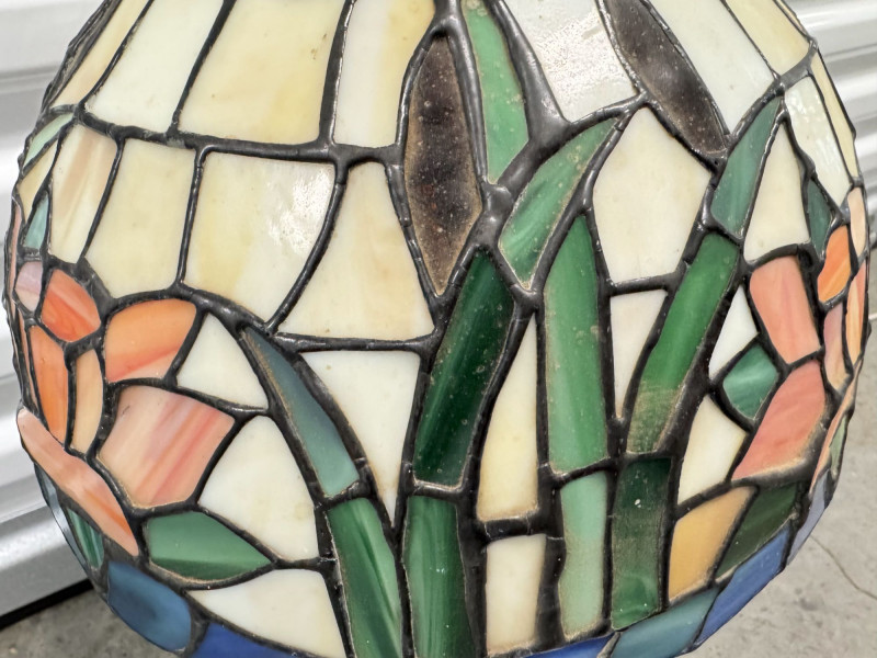 Lot # 35 - Tiffany-Style Stained Glass Lamp - Orange Blossom & Green Leaf