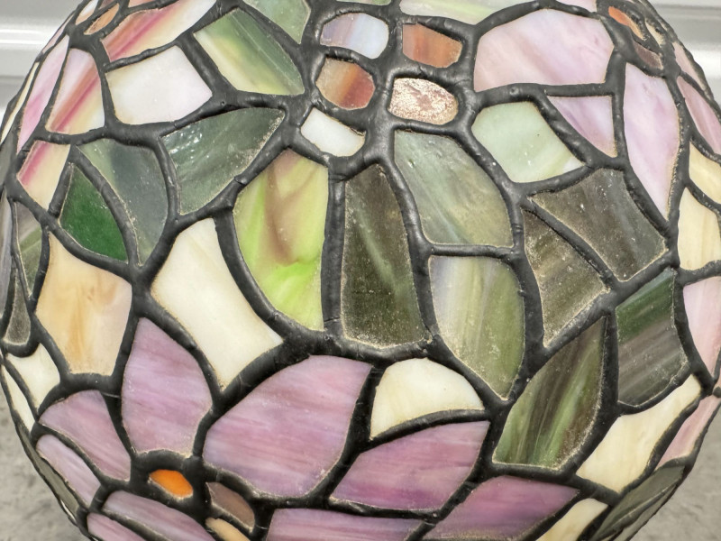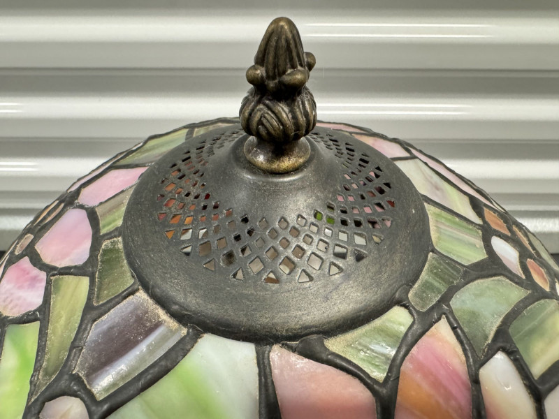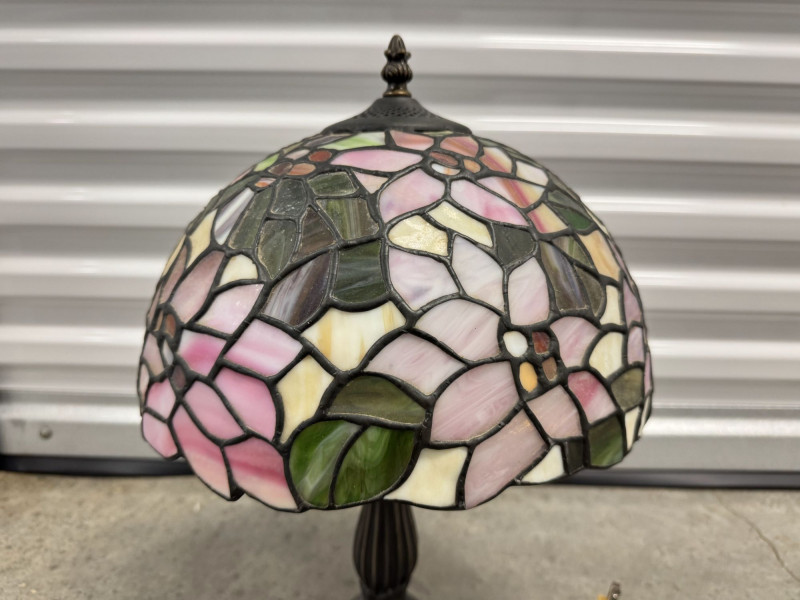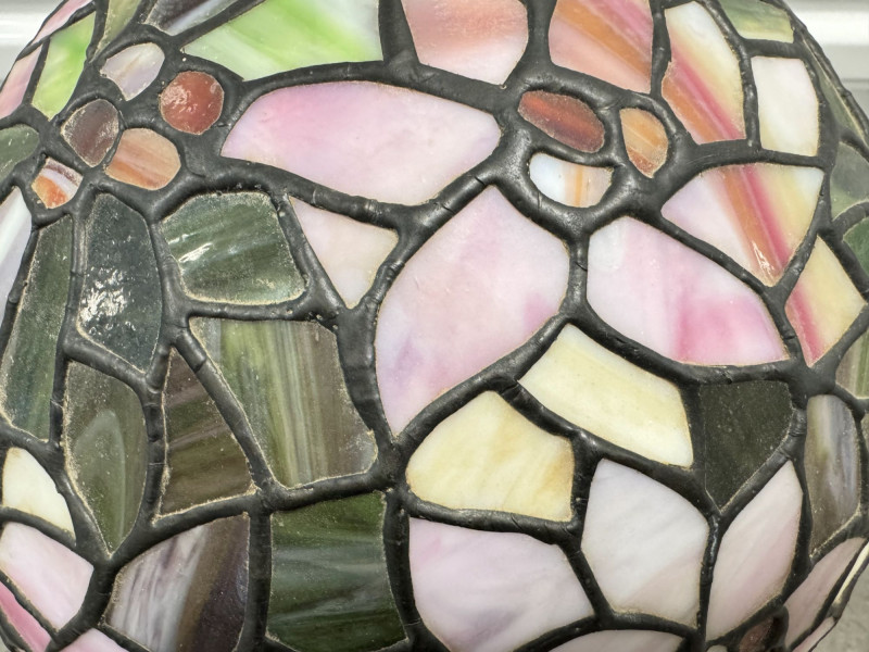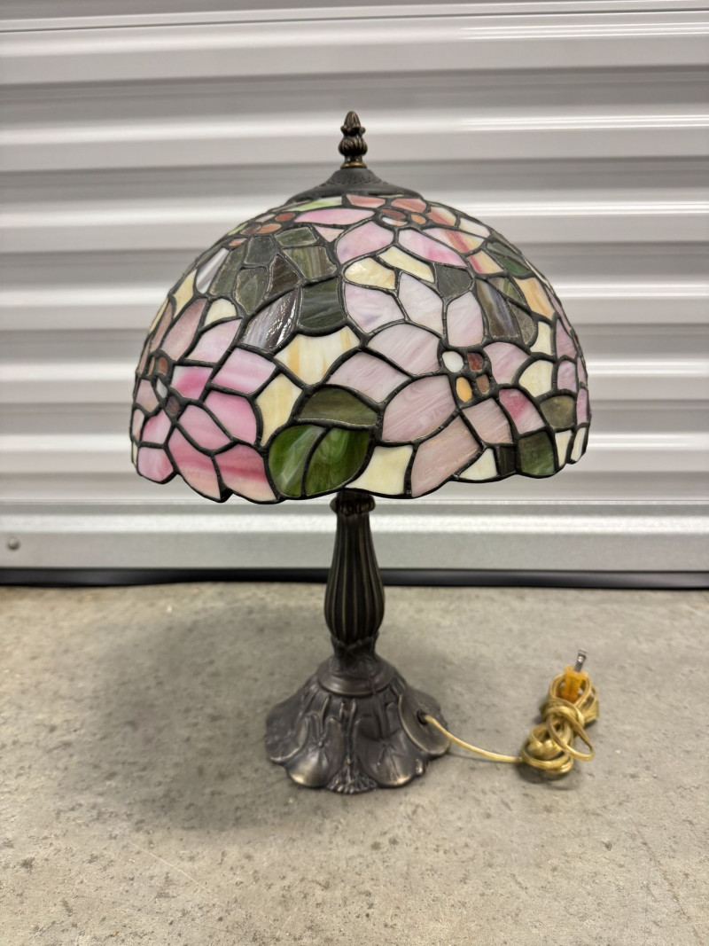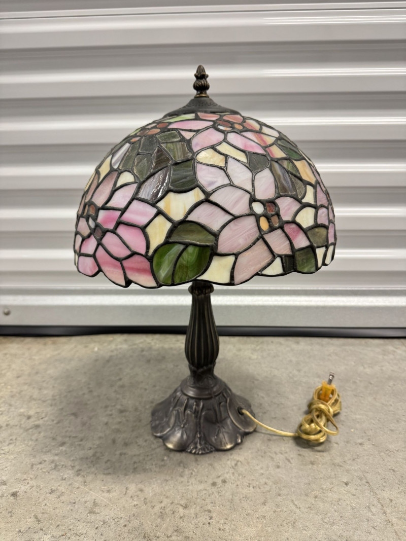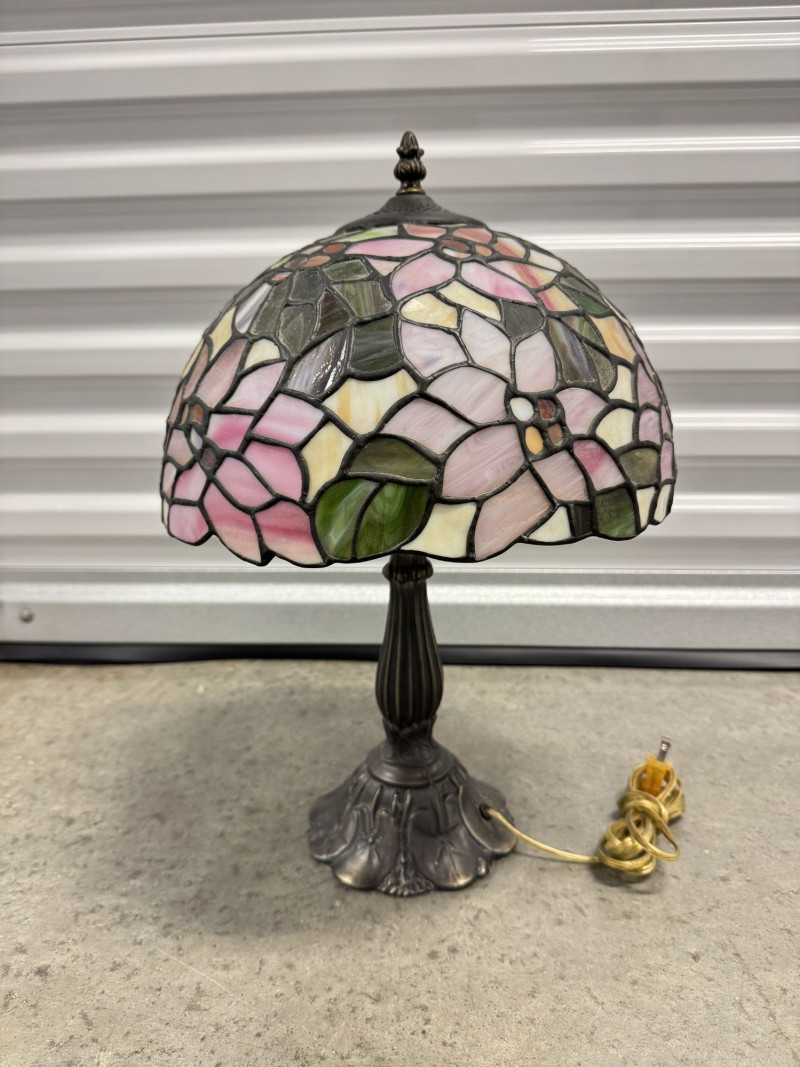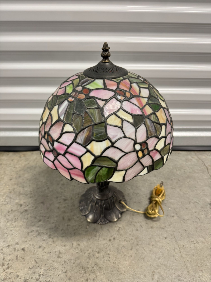 Tiffany-Style Stained Glass Lamp - Pink Blossom & Floral Base.