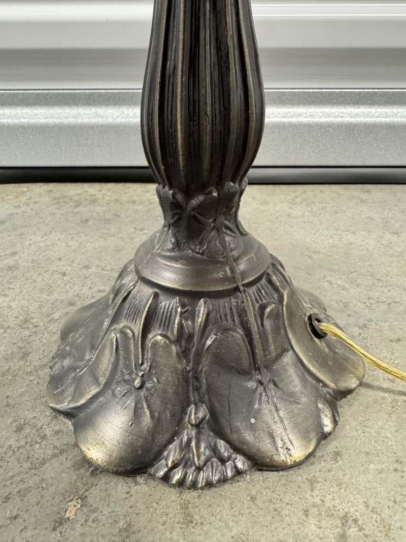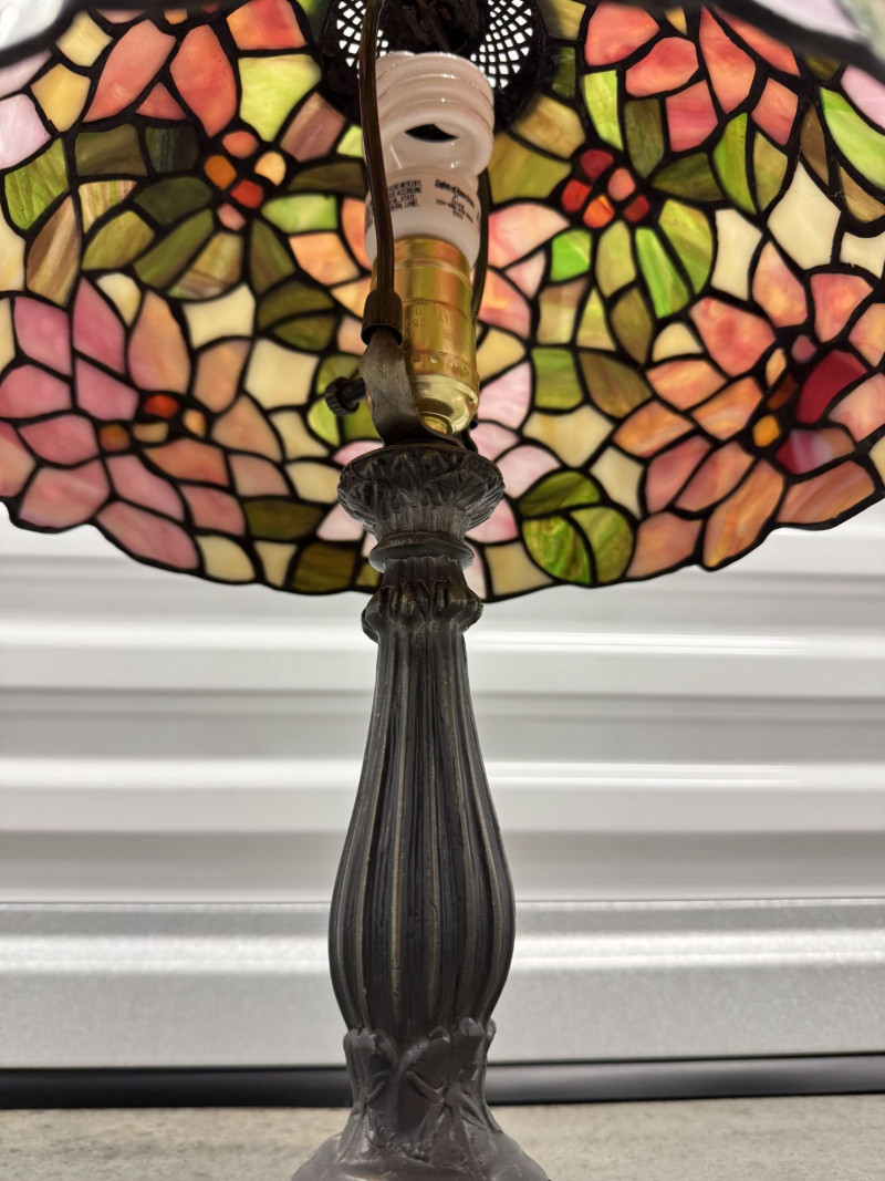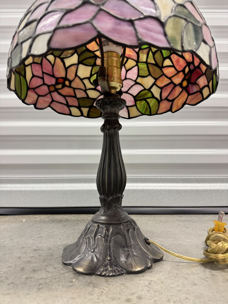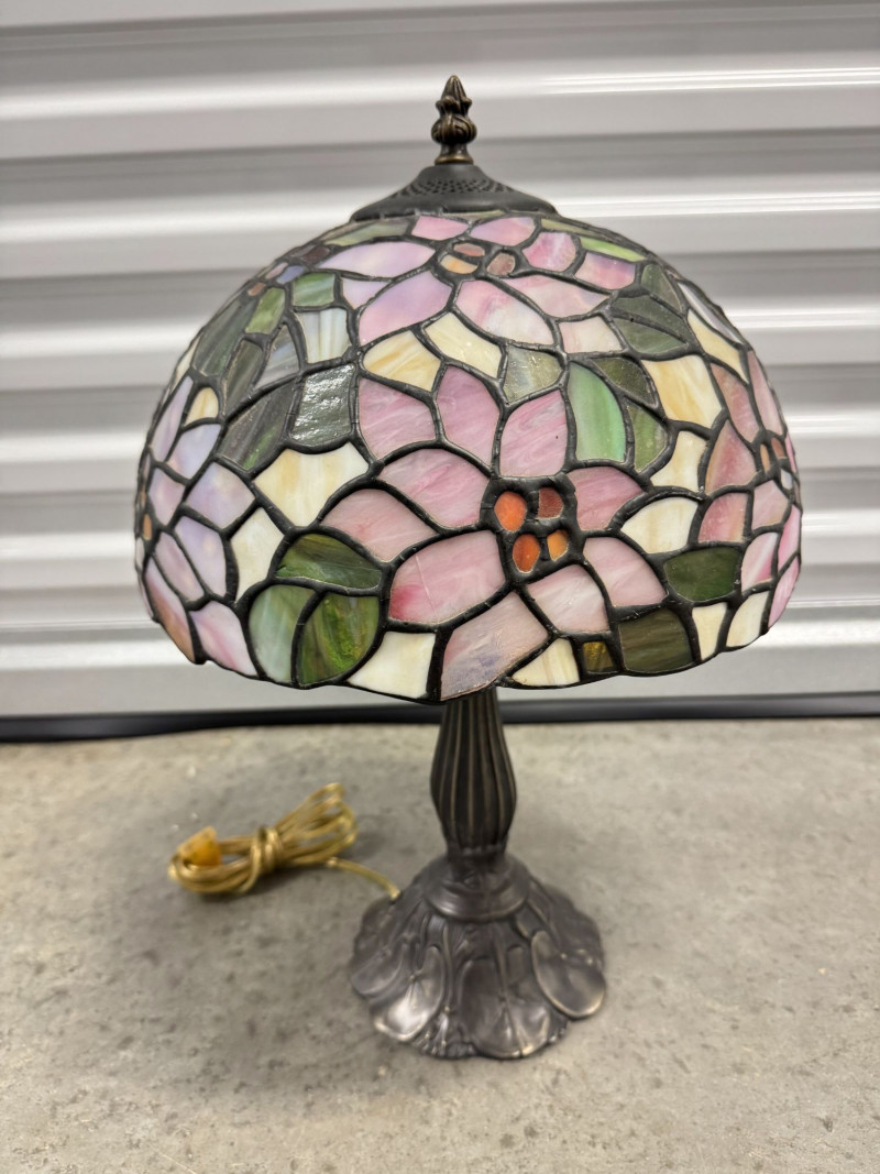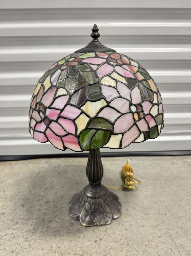 Lot # 49 - Tiffany-Style Stained Glass Lamp - Pink Blossom & Floral Base