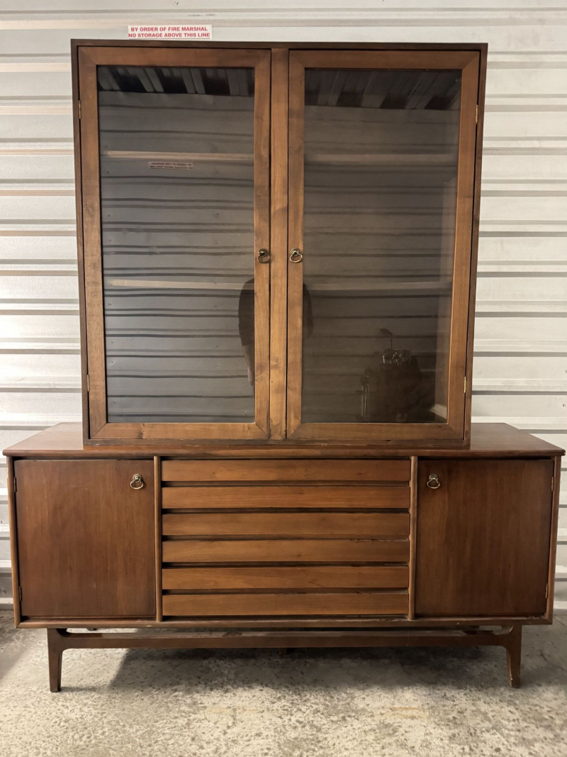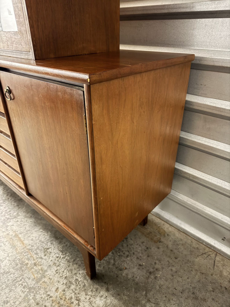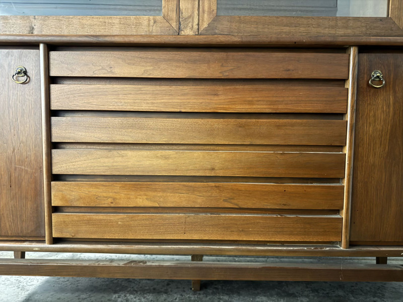 Lot # 52 - Vintage Mid Century Modern Stanley Credenza Glass Display Hutch - 2pc