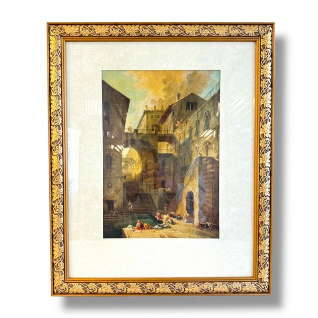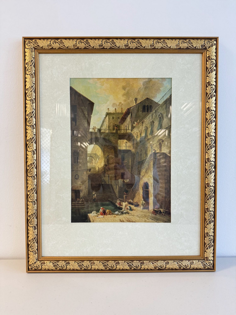 Lot # 55 - Framed "Washerwomen 1796" by Hubert Robert - Repro Print
