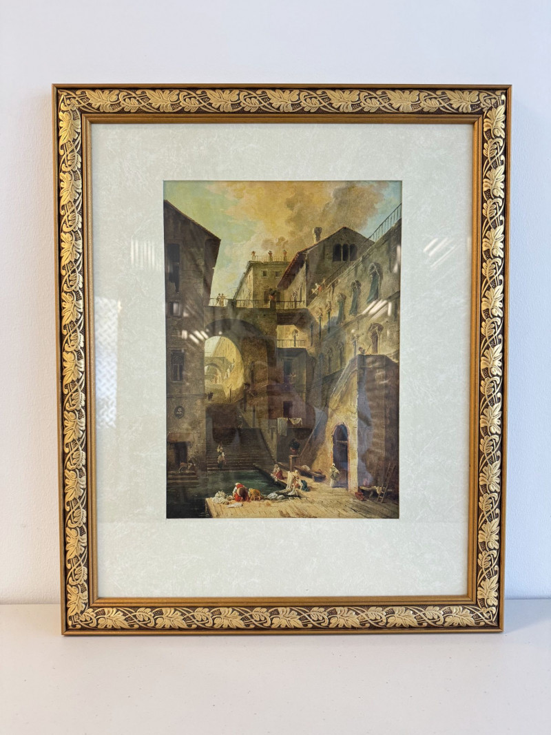 Framed "Washerwomen 1796" by Hubert Robert - Repro Print.