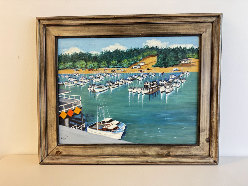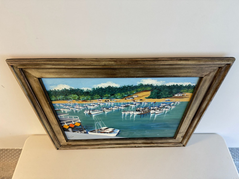 Lot # 72 - Vintage Depot Bay Harbor Painting - Signed Gwen Guess, Framed