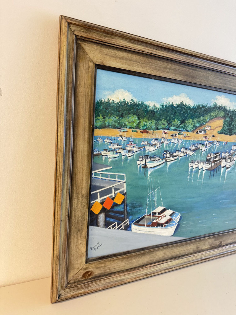 Vintage Depot Bay Harbor Painting - Signed Gwen Guess, Framed.