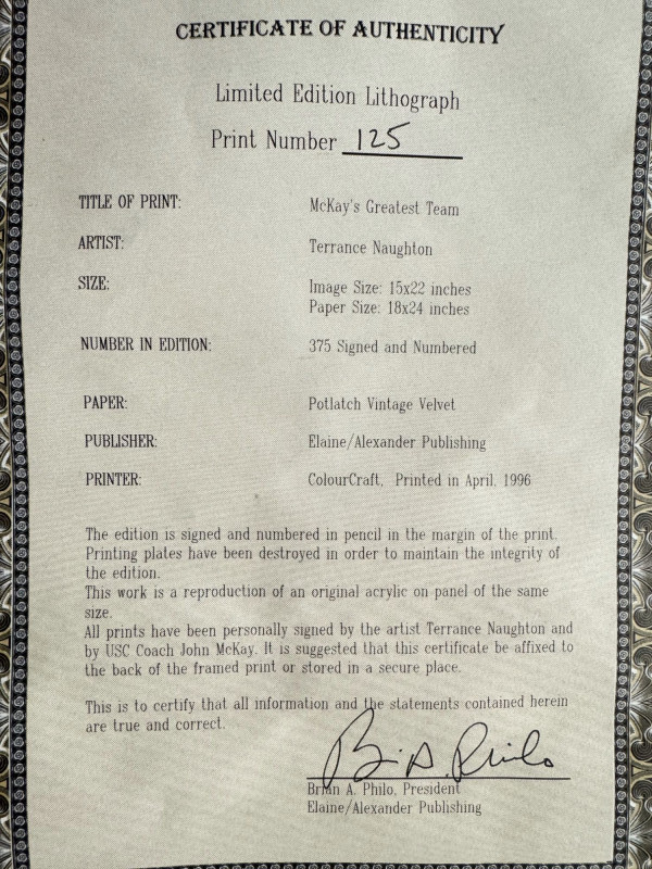 USC Trojans McKay’s Greatest Team - Signed & Numbered Lithograph + COA.